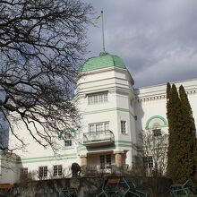 1907年に銀行家ティールの邸宅として建てられたアール・ヌーヴォー調の建築で、白い壁に緑の屋根が美しく、周りの環境も素晴らしいです。