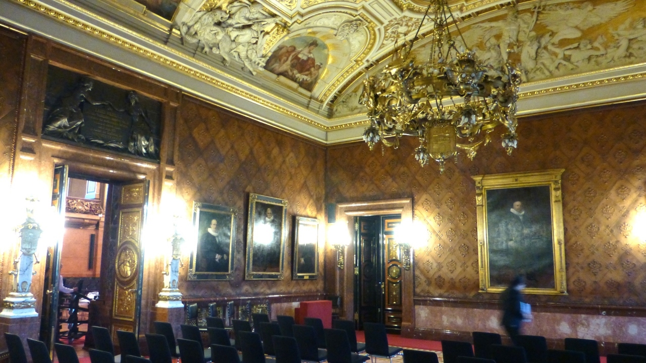 外部だけの見学で終わらせるのはもったいないです。ガイドツアーで市庁舎議事堂内部を見学できます。会議の間、皇帝の間、市民の間、宴会の間など豪華で重厚なたくさんの部屋がありました。