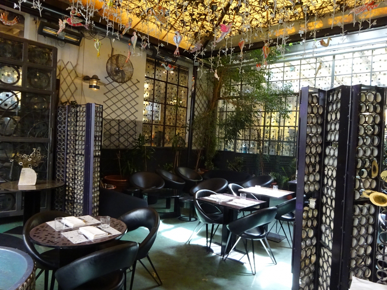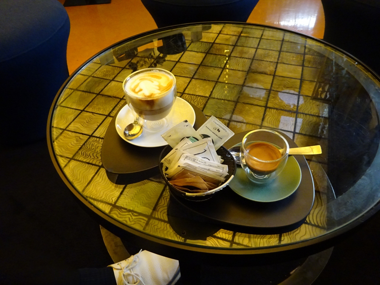 中庭には樹木や植物があって自然との調和が感じられ、テーブルや椅子もシックで、そんな中でエスプレッソを飲んでくつろぎました。