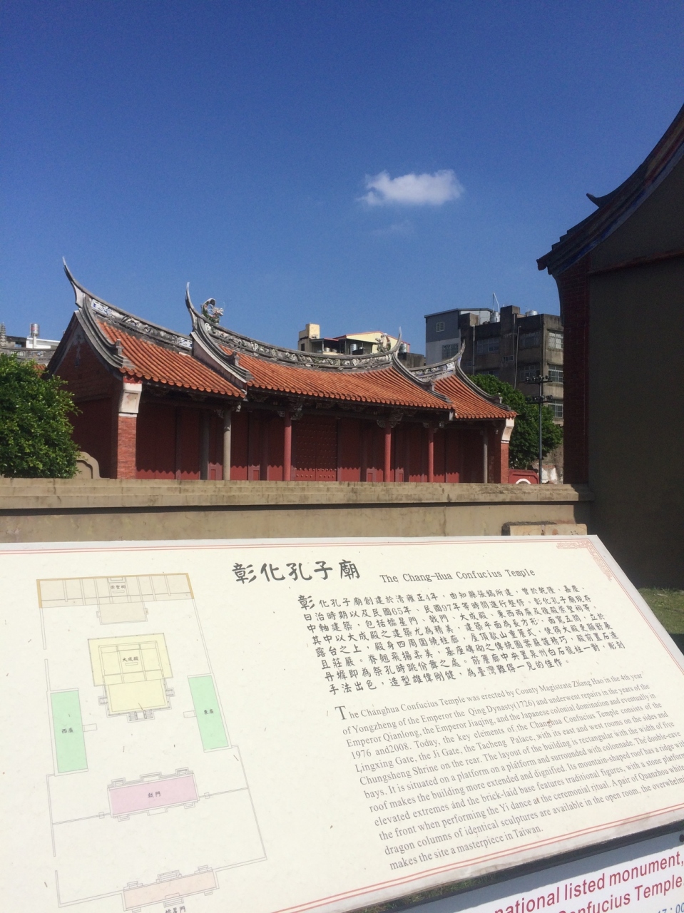 孔子廟の隣の敷地にある大成幼稚園?みたいな今はカフェ兼食堂のようになっている場所も、この孔子廟と同じ古跡でした。でも、孔子廟は台湾の宗教名所100選の中にもランクインしています。中庭が広々としていました。