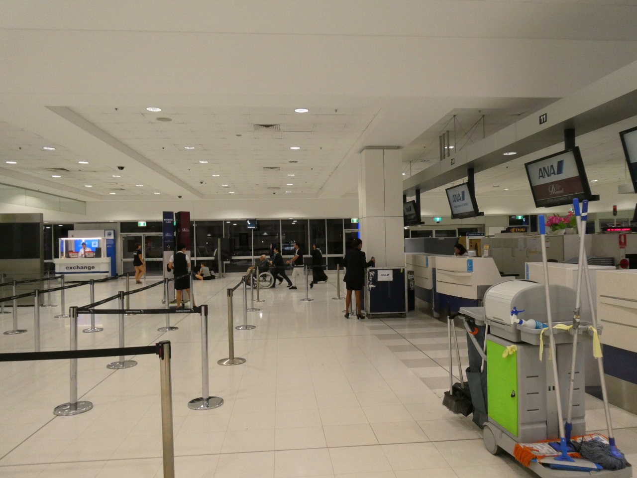 今回ちょっとばたばたしていて国際線ターミナルに市バスで到着したのが20:18分で慌ててANAカウンターに行くと誰も居らず掃除やポール等の方付けをしていてカウンタークローズかと焦ってしまいました。