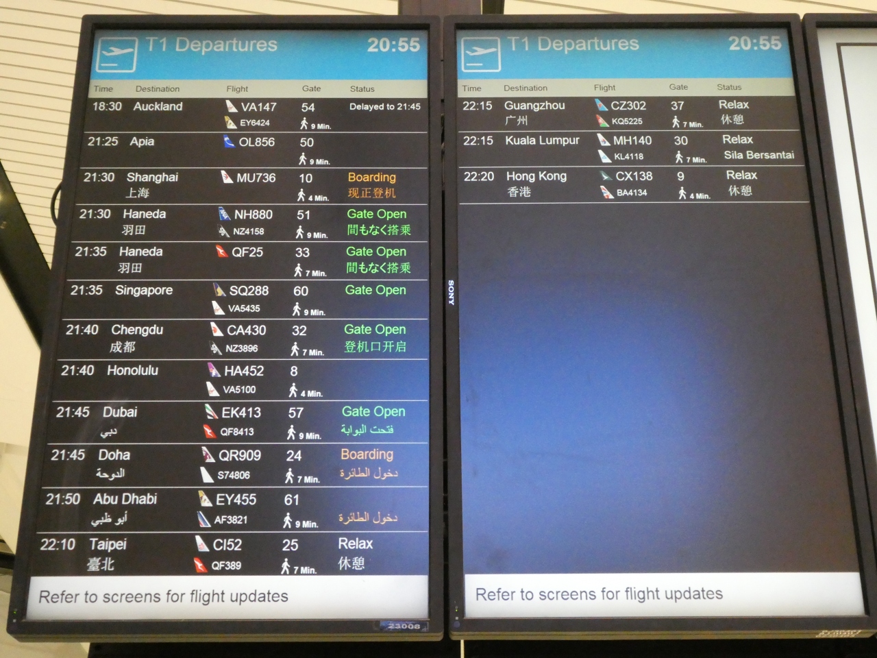 搭乗便はANA・NH880便でシドニー21:30発の東京・羽田行きです。