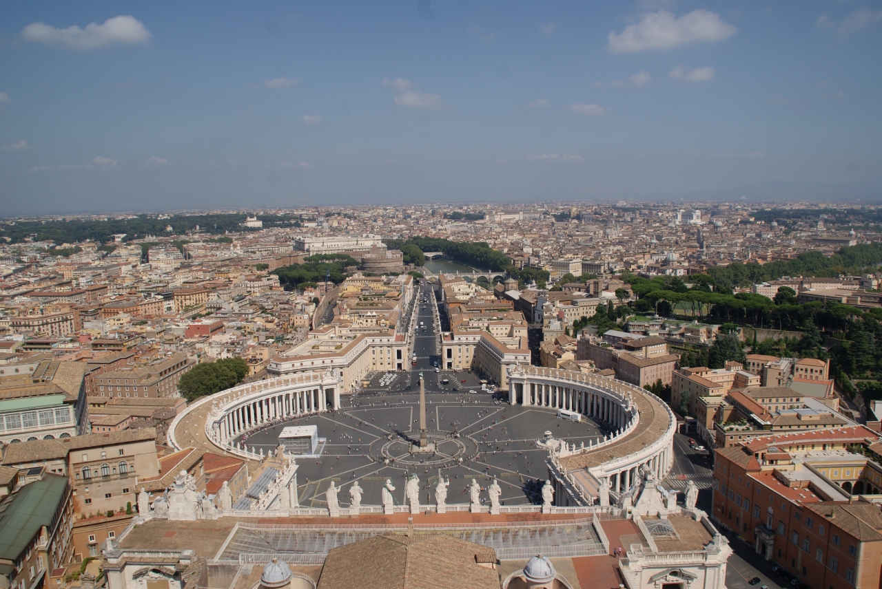 エレベーターを利用すると入場料は7ユーロでした。エレベーターを使っても結構階段を登りました。上に登るとクーポラの上から聖堂内部を見ることができます。テラスに出るとローマ市内を360度一望できて景色が非常にいいので、おすすめできます。帰りは階段のみを使って下ります。サン・ピエトロ大聖堂に行ったら、クーポラの上に登るといいでしょう。