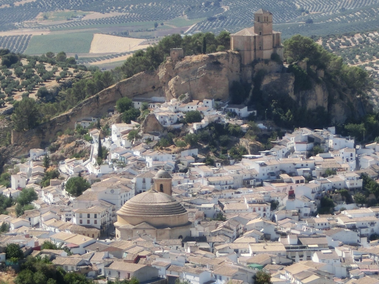 グラナダ陥落の最後の瞬間までキリスト教徒軍に抵抗したことで名高い、グラナダ王国の要塞だったモンテフリオ。今は山間部の小さな村なのに、新市街の中心にスペインで2番目に大きい直径28メートルのドームが印象的な教会がありました。ローマのパンテオンに着想を得て、17世紀に建てられたそうです。展望台から見下ろすと、大きなドームはイスラムのモスクのようでした。