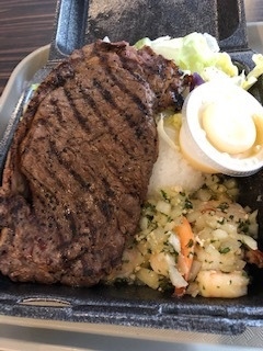 ココヘッドからワイキキに戻りさてランチですが、昨日の夕食にハワイアンセンターに行った時に、隣のお店に多くの人が列をなしていたのでちょっと気になって調べると、美味しいステーキが手軽に食べられる「チャンピオンズ・ステーキ&シーフード」である事が分かり、再度行ってみました。ちょっと遅めの時間といこともあって行列も無く即買えました。端っこのスジ部分はカットし、いい所だけ食べると、口に残ることなく食べきれて、まずまず美味しい肉ですね。量も十分あって満足しました。肉は2回食べましたので、次は違うものを食べたいと思います。