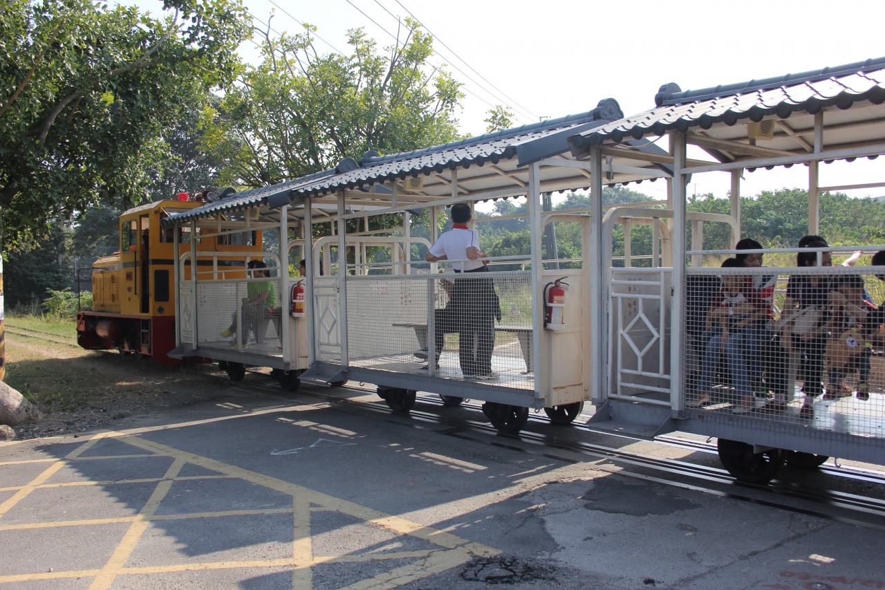 MRTの橋頭糖廠駅と台糖の花卉農園を結ぶ観光トロッコ列車です。かつてさとうきびを輸送したナローゲージの鉄道を利用しています。小さなトロッコは開放感満点で、さわやかな風が抜けていきます。台鉄の列車が追い抜いていきました。