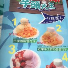 2軒隣に思慕昔というマンゴーかき氷の有名店があるので、そっちの方が有名な気もするが、こちらの芋頭大王も負けていませんでした。芋頭大王なのでタロイモの商品だけ扱っているのかと思いきや、マンゴーかき氷もありました