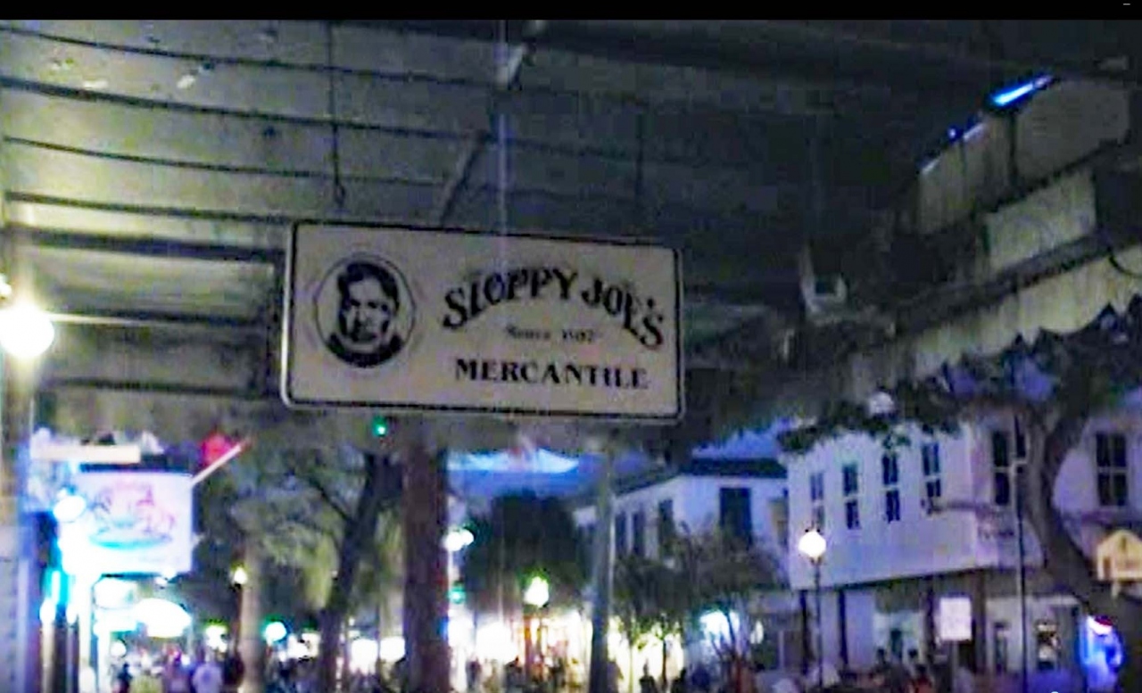 マロリースクエアから数百メートルの場所に、ヘミングウエイが足繁く通ったバーがあると「地球の歩き方」に書いてある、"行ってみたい"との家内情報に従って進むと、通りに看板が吊り下げられていました。”Sloppy Joes"と書かれ、ヘミングウエイの似顔絵が付いていました。