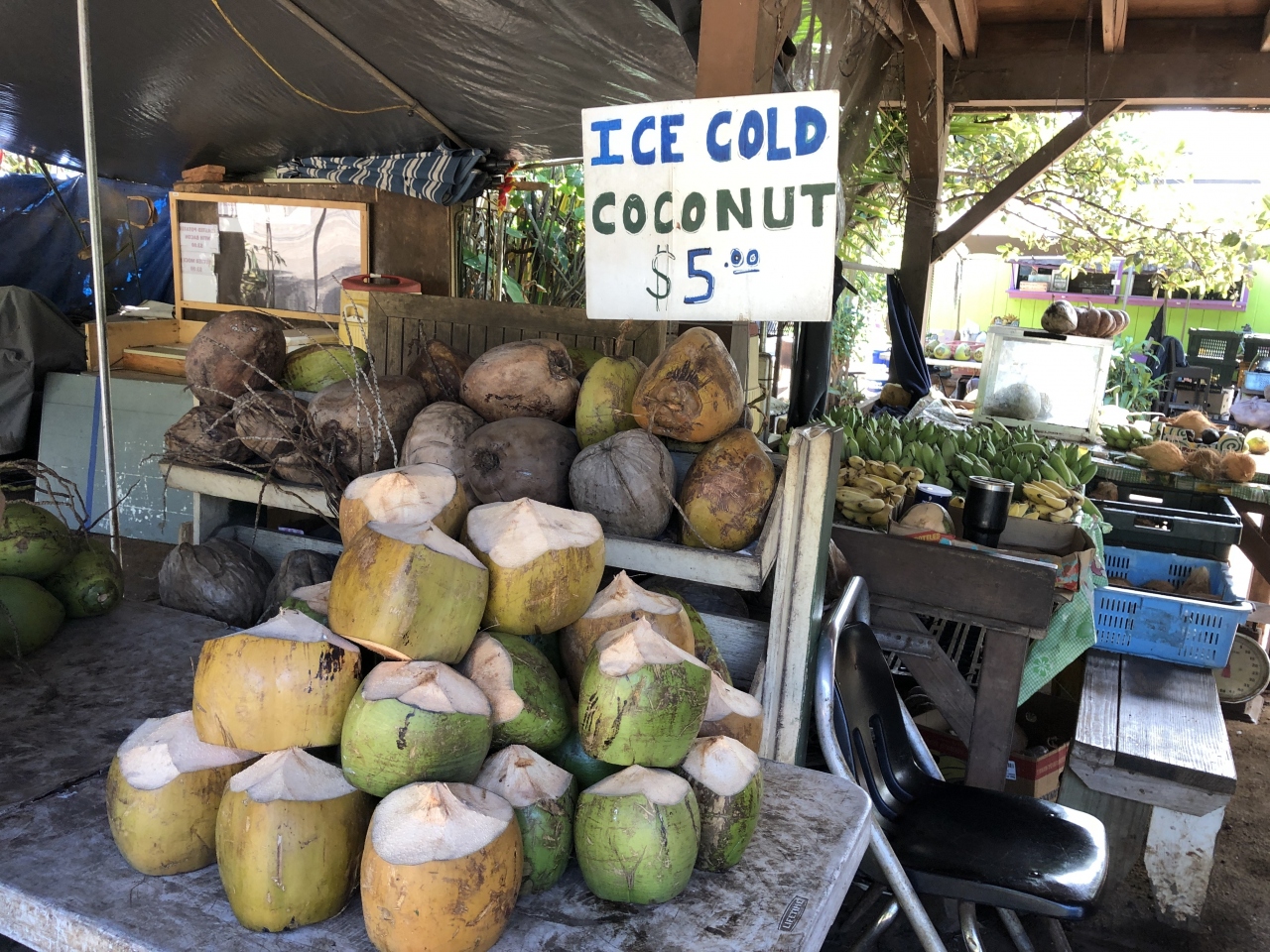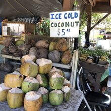 私が感じた特徴としては、左側のお店は、冷たいココナッツを大々的に売っていて、