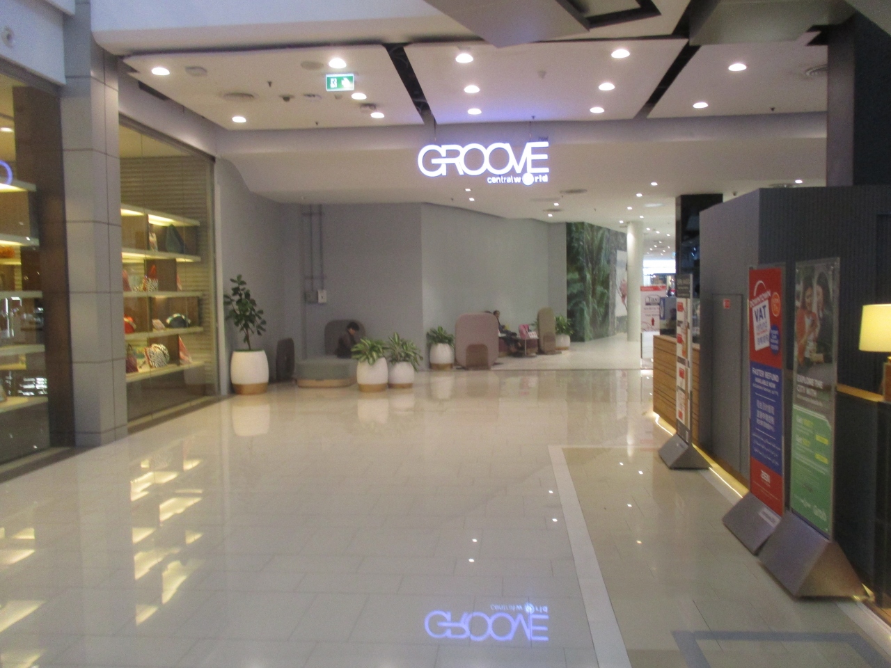 セントラルワールドでショッピングというイメージが津陽ですが、有名ブランドやタイのブランドが一挙に集まっている楽しい場所です。セントラルワールドの西側に飲食店館Grooveがあります。さまざまタイプの店舗が集まった飲食街は、中央が吹き抜けになった2階建てで、本館のファッション店舗が閉店しても夜遅くまで食を楽しめることができます。