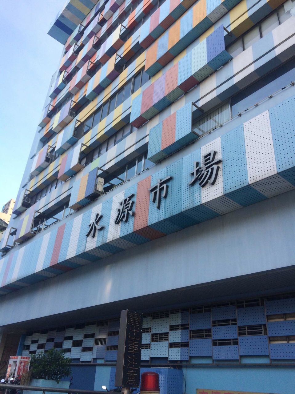 水色のビルのような建物全体が水源市場になっています。上の階のほうでは、映画館か劇場?のような設備があるようでした。1階のにぎわいがすごかったです。近隣住民の方たちが野菜やお肉、豆腐などを買っていました。