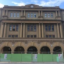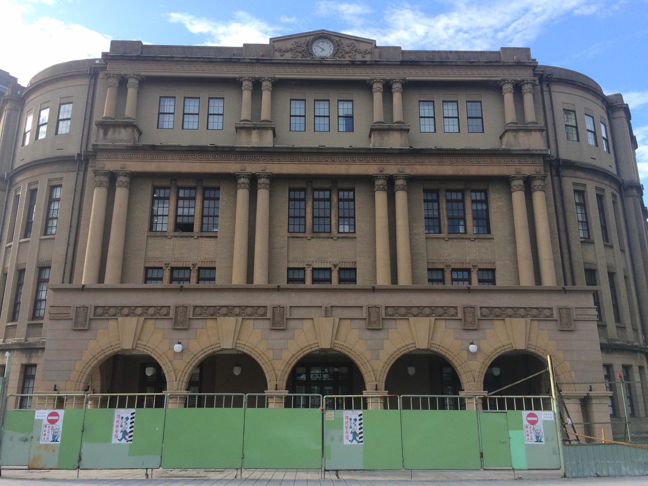 台北郵便局の玄関側の道路は、工事がされていました。背景に青空が映えました。観光客の誰でも郵便局が営業中なら入ることができました。天井までの空間が広く階段の手すりもおしゃれでした。また見学に行ってみたいです。