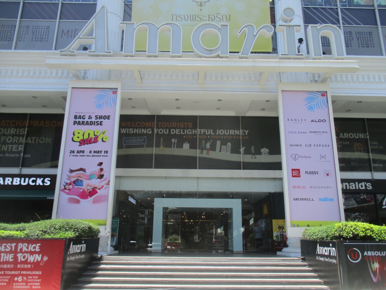 GWのバンコクは燃えるように暑かったので、アマリン プラザでウィンドウショッピングを楽しみました。バンコクのショッピングモールであるような中に入るときな持ち物検査はなく気軽に入店できます。暑い日はショッピングセンターめぐりがおすすめです。