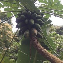 日本の街路樹ではあまり見かけない植物ばかりでした。園内には小道があり、迷子になりそうなくらいの広い敷地でした。クーラーがきいている場所はなく、じめじめしていて、とにかく蒸し暑かったです。パパイヤ、バナナがなっているのも見ました