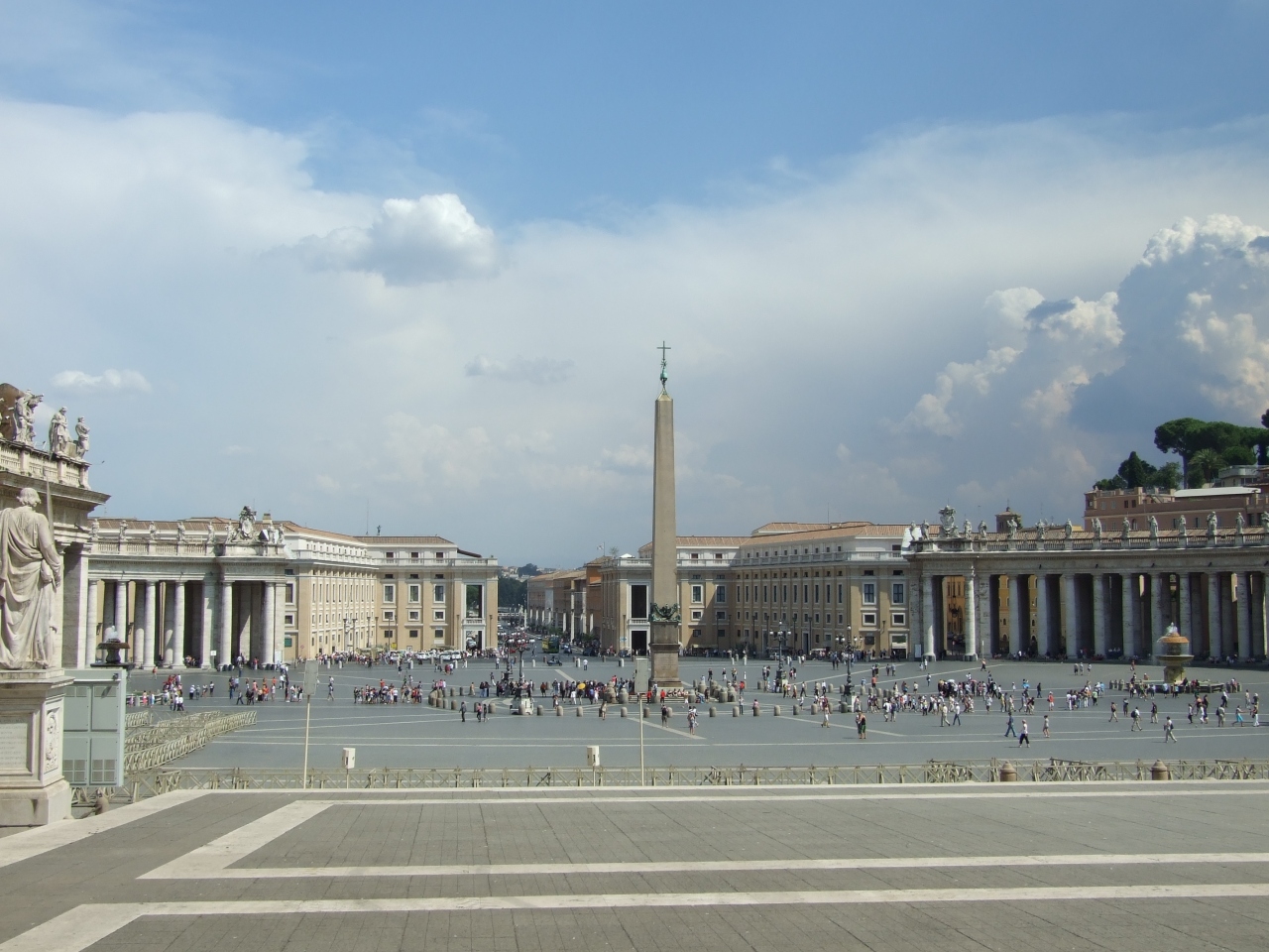 サン・ピエトロ大聖堂の正面が広場です。ローマ観光の目玉ですから、人出が多いのは仕方ありません。大聖堂の丸天井に登る経路があるそうですが、未だに到達できていません。それでも、全景を眺める広場は壮観です。