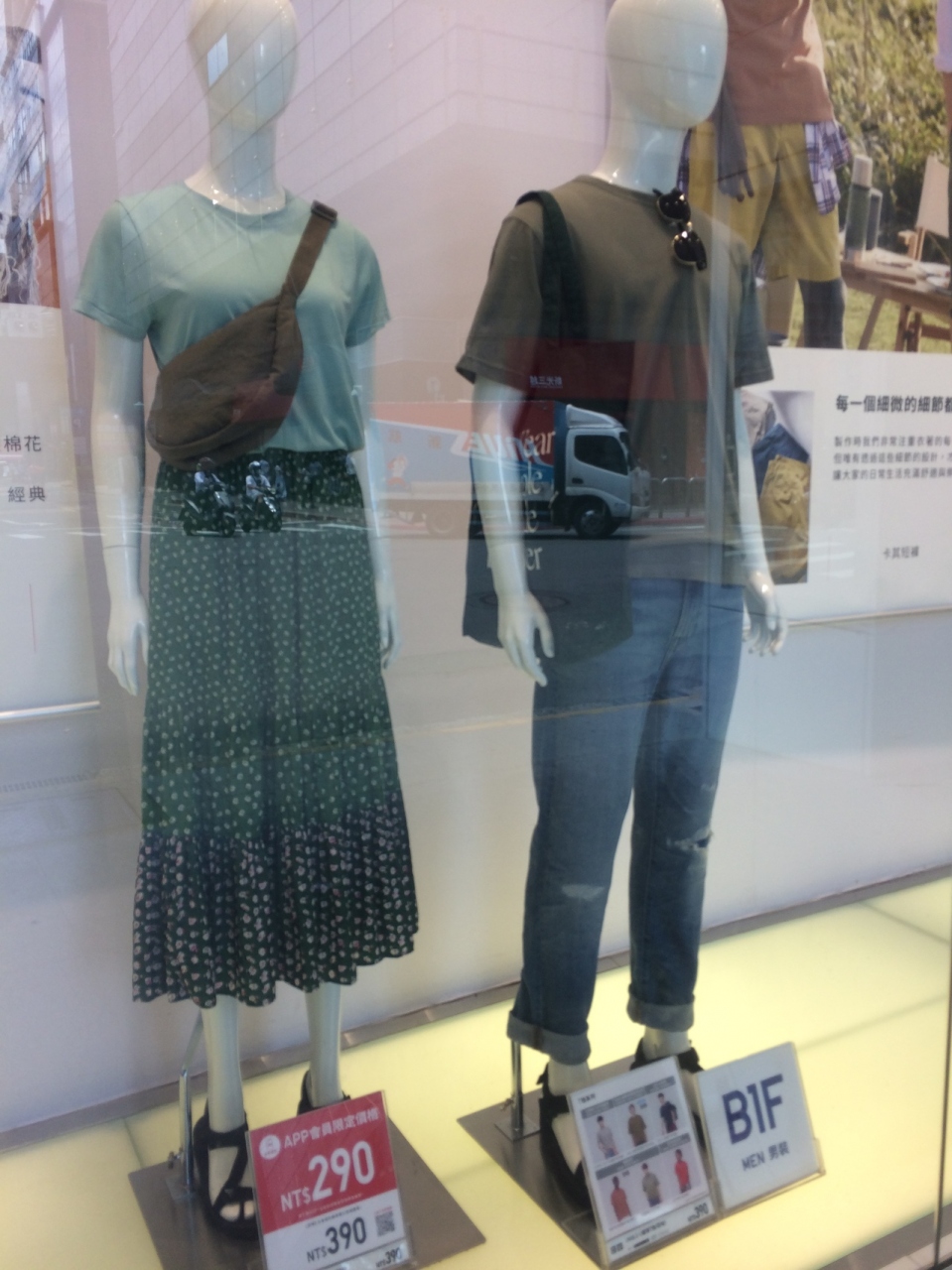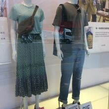 台北駅の南側の通りにあるユニクロで大通り沿いではありませんが、細い通りで目立ちました。新光三越の斜め向かいにありました。1階はメンズが多くありました。エレベーターが右側にあり、地下の売り場も見ました。SALEは赤い数字でした