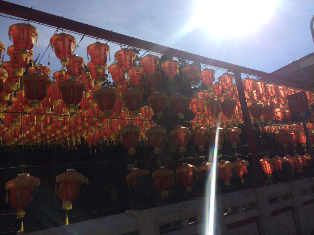 士林夜市の中にあち、女性の神様?仏様?である媽祖神を祀っているお寺です。赤い提燈の灯りが、お寺の建物内にも、敷地の入り口にもたくさん並んでいて、すぐ分かります。お寺の周りにも小さい屋台がひしめいていました。