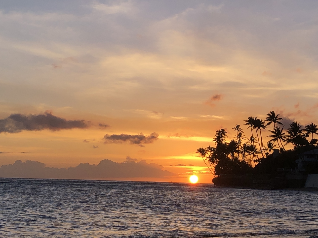 ちょうど大きなお家とヤシの木が目の前にあり、季節によってはサンセットが見辛いこともありますが、ちょっと移動すれば、ヤシの木の影とサンセットがきれいにみられます。