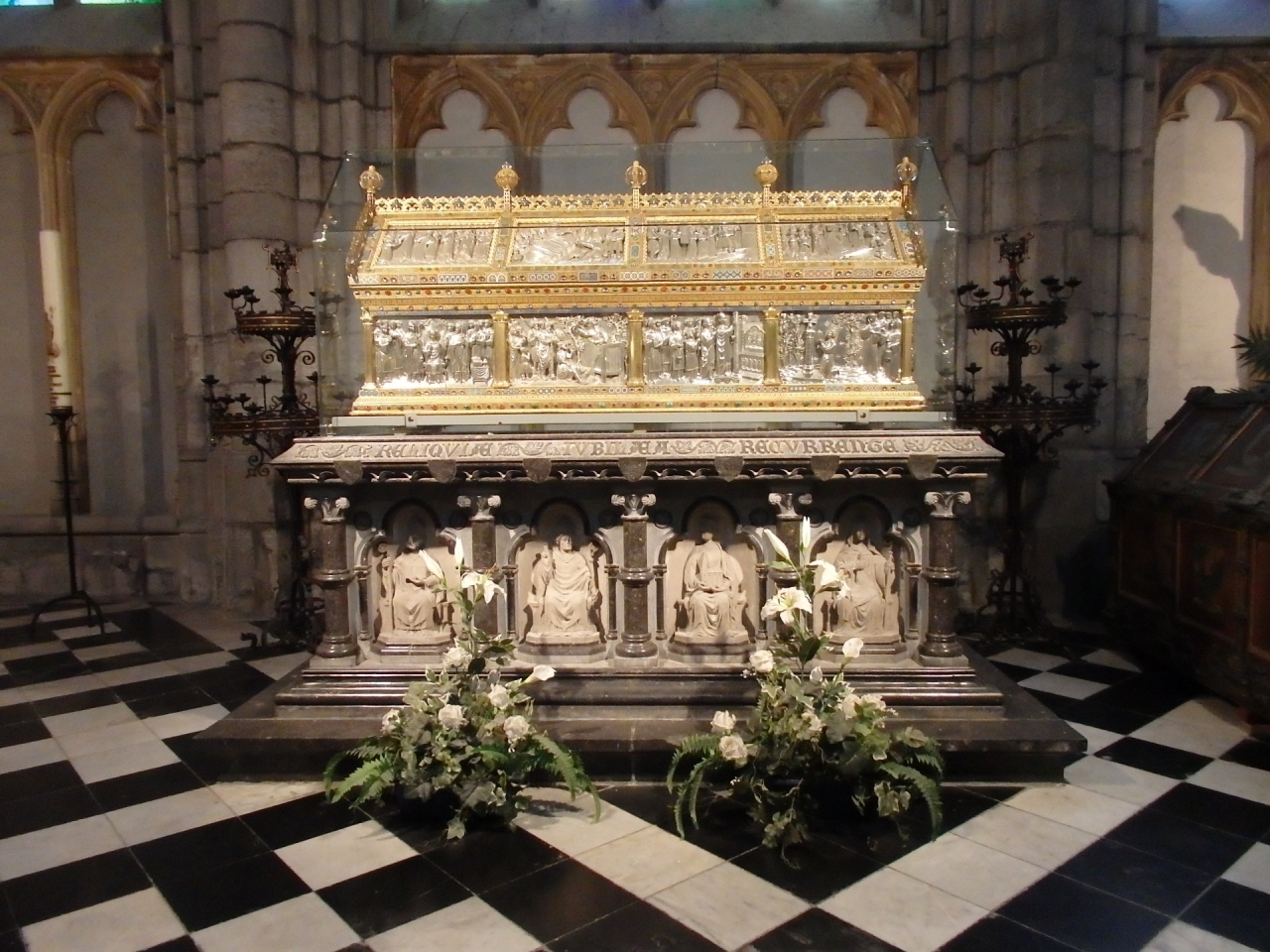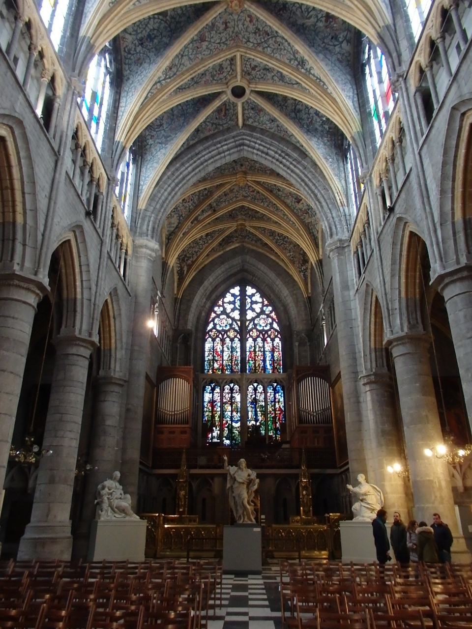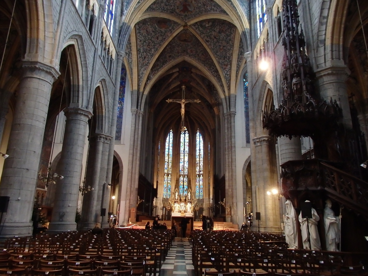 一番の見どころは美しいステンドグラスの数々!とりわけ1530年に作成されたベルギー最古級のものは高さ18メートル幅6メートルもあって、細かな細工と色合いの美しいものです。金銀製の目もくらむような聖ランベールの厨子の他に、宝物殿内(こちらは有料)にある金・銀製の聖遺物箱、象牙細工の見事な作品などを見ることができます。