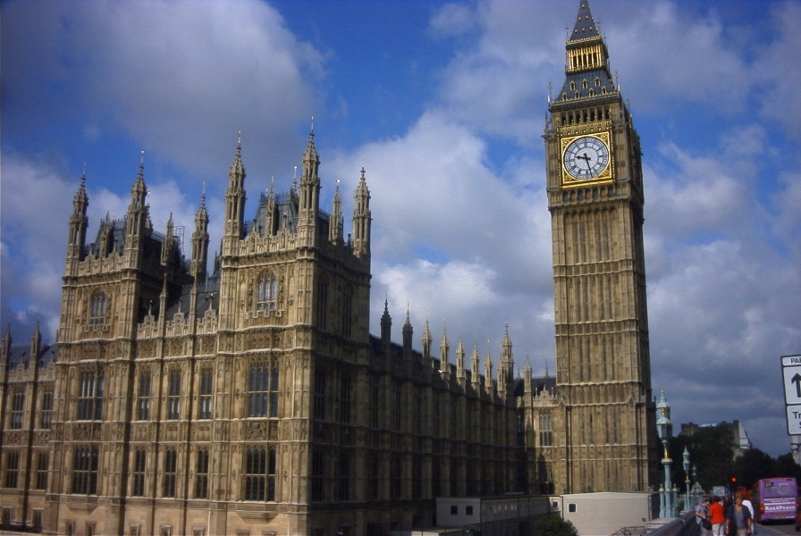テムズ川に立つウエストミンスター宮殿が、現在の国会議事堂です。有名な時計塔のビックベンがありますが、現在は工事中です。1090年に建てられたそうで、19世紀半ばに、今日のネオ・ゴシック建築の壮麗な建物で、内外からの大勢の観光客が見学に来ています。