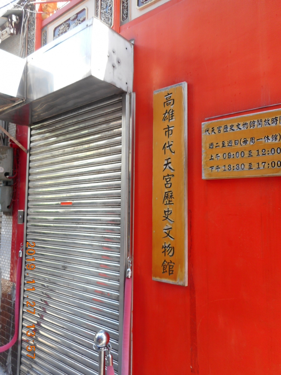 台湾の高雄観光で立ち寄りました。メトロのオレンジラインで西子灣駅で下車し、西に数分歩いた所にある大きなお寺です。大きな山門を入ると左右に2階建ての細長い建物がありました。2階は宿坊にでもなっているのか同じような造りに見えました。正面が本堂?で、右奥に高雄市代天宮歴史文物館の表示があったのですが、シャッターが下りていて入れませんでした。