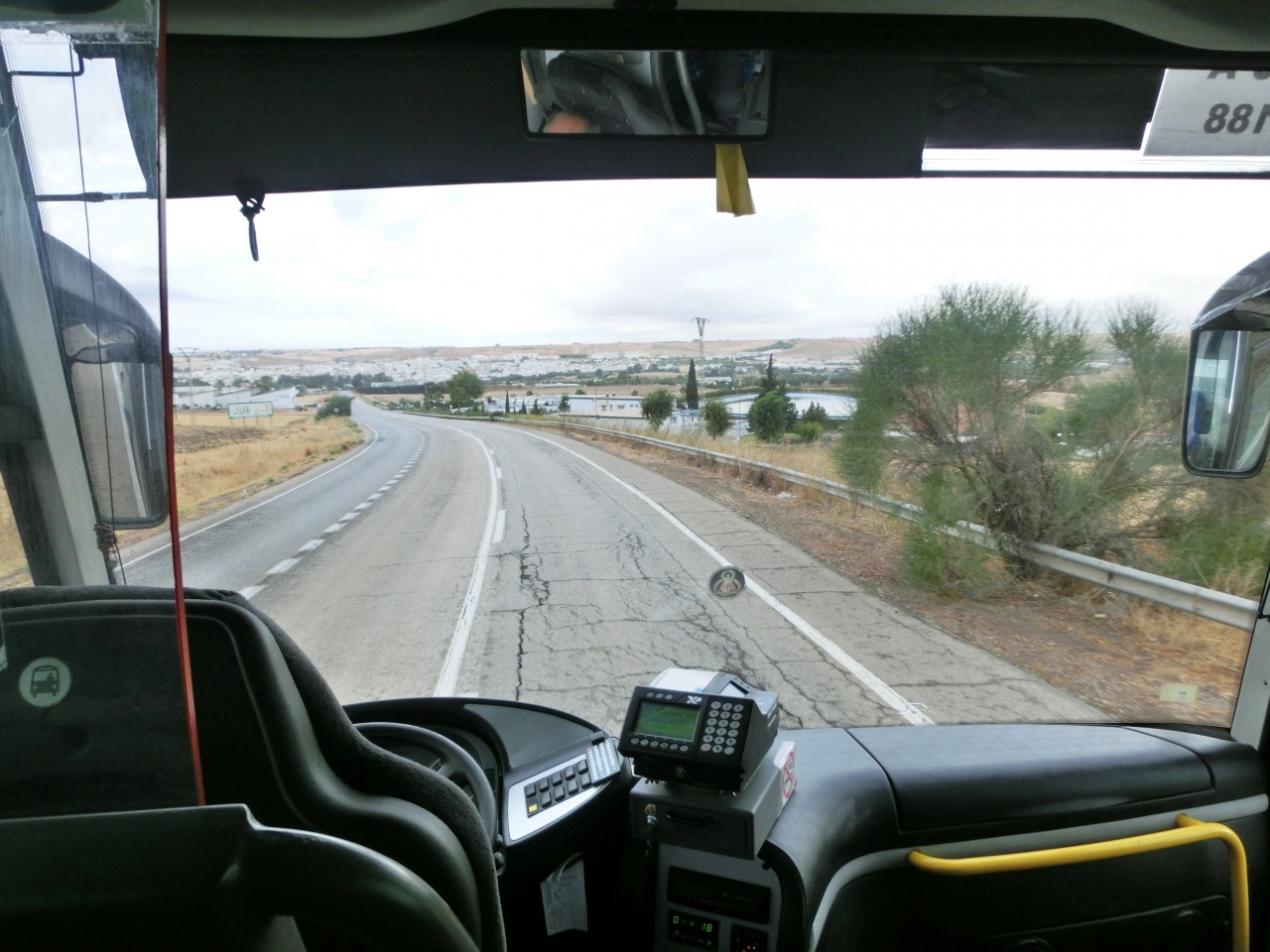 コルドバからセビリアへの移動に、ALSAのバスを利用しました。チケットは、事前に日本で、ネット経由で購入しておきました。インターネット予約では、座席も指定できたので、運転手の後ろの一番前の席を指定、前方の大きな窓から、高速道路脇に設置された黒い牛の看板や、途中停車する町の景色が楽しめました。