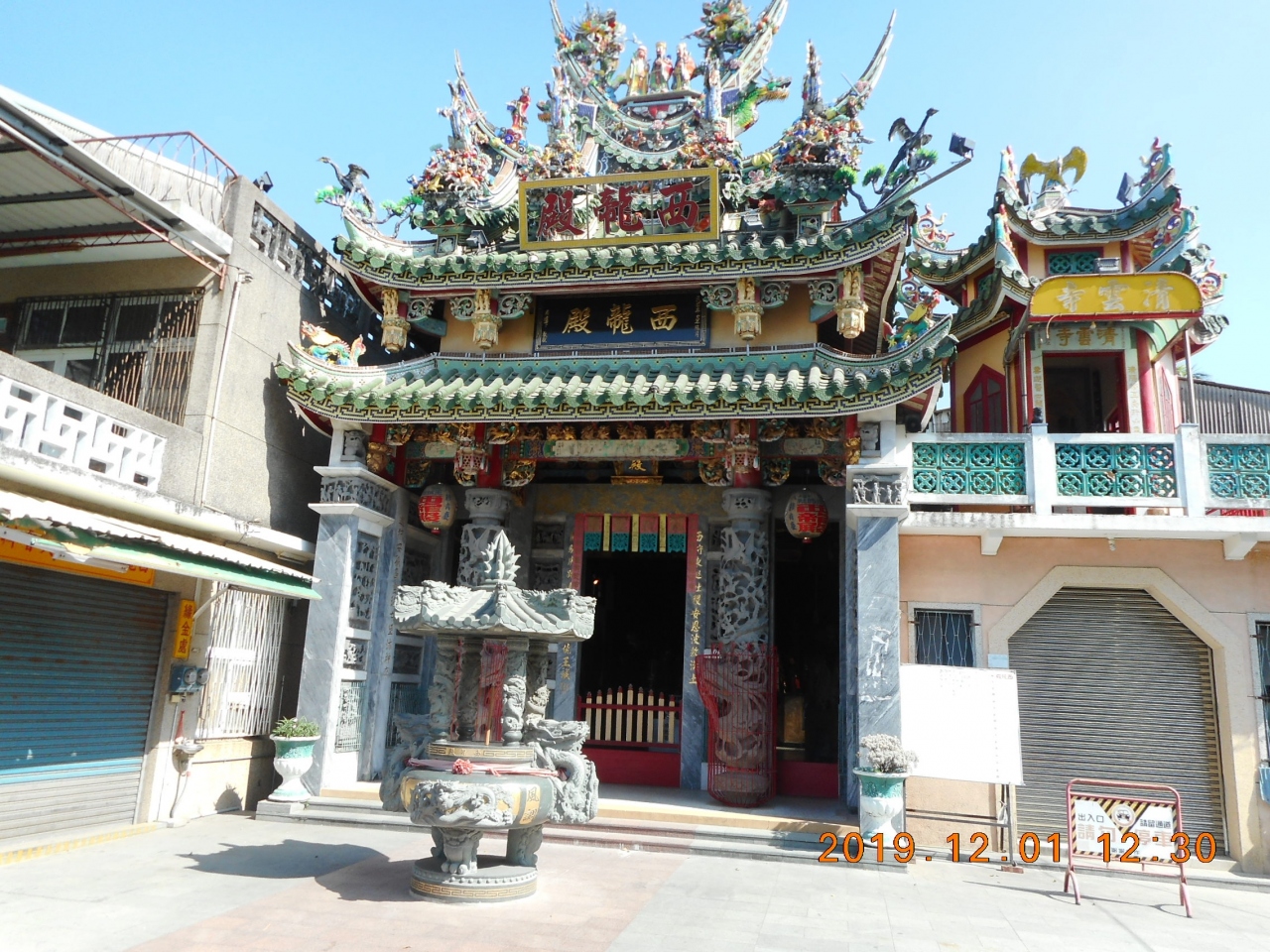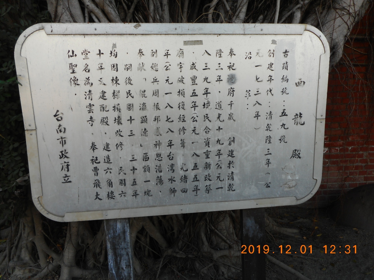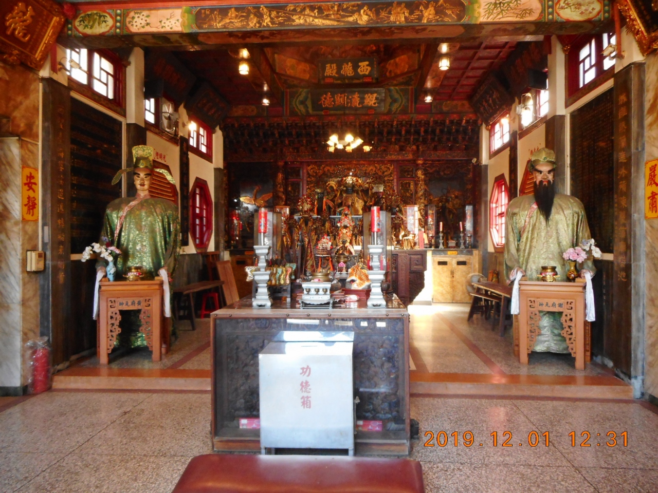 台湾の台南観光で立ち寄りました。台南市内から少し離れている台南のリゾートである安平地区にあった寺院です。安平古保史蹟公園から西に1分の國勝路35巷通り沿いにあった寺院です。さほど大きくない寺院でしたが屋根の装飾はすごい量でした。中部の入り口の両側にに飾ってある人物も見慣れない雰囲気の像でした。