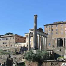 建てられたのが7世紀初めと、フォロロマーノの中では一番新しい建造物です。一本だけ屹立するその姿はとても目立っています。もっとも、記念柱というからには一番上には何か彫像などが設置されていたと思われますが、今は何もありませんでした。ほとんどう当時のまま残っているというのも貴重ですね。