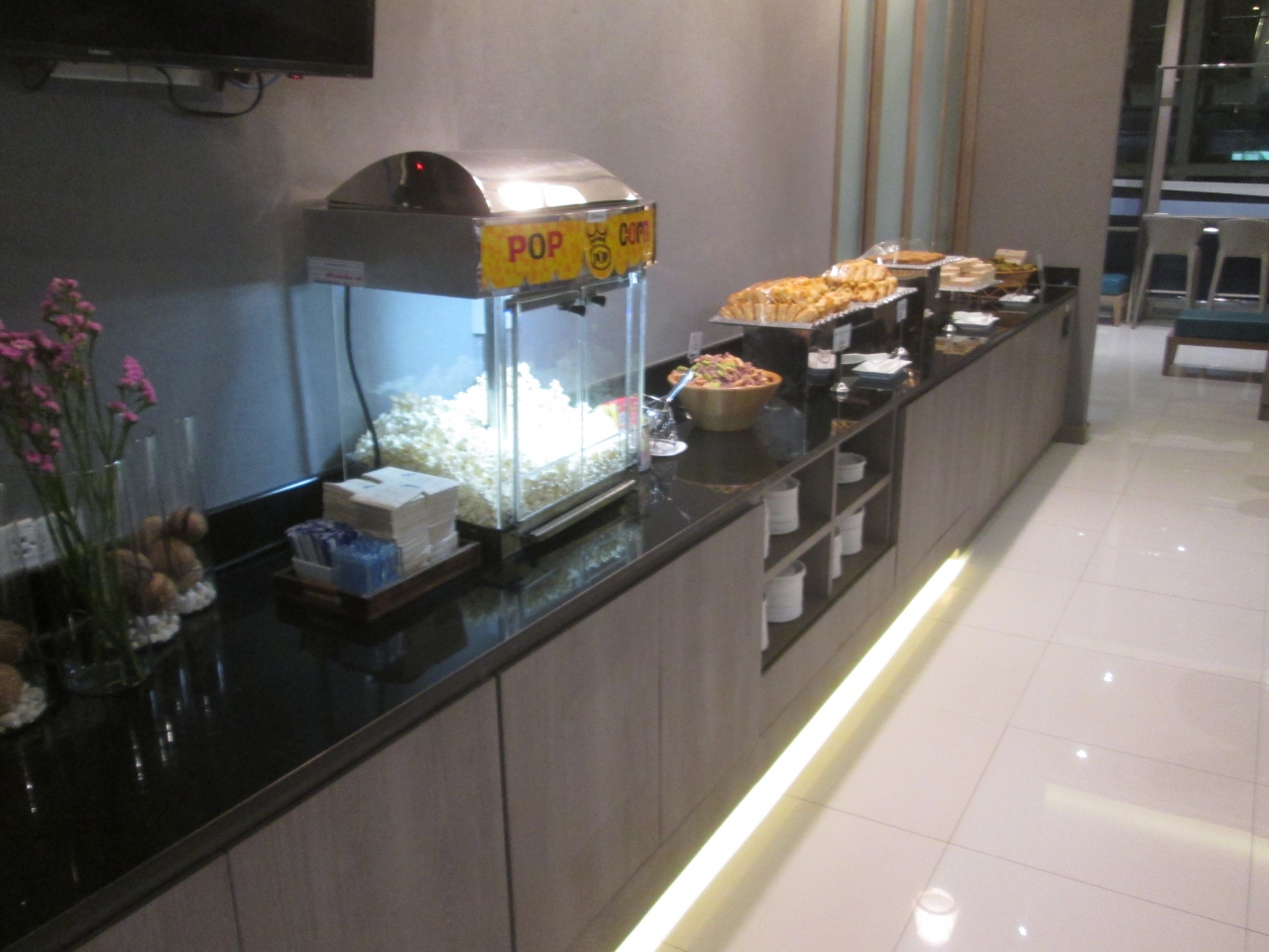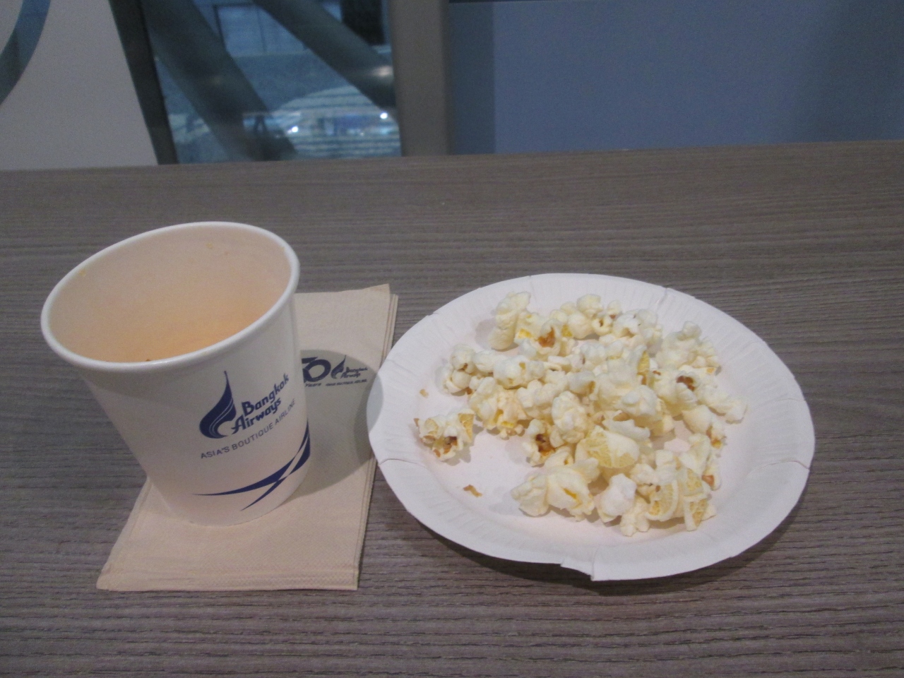 バンコクエアウェイズ ブティックラウンジのフードメニューにホットメニューがありました。アメリカ・ヒューストン空港のユナイテッド航空ラウンジは冷めたいパンにハムとチーズに生野菜というメニューでしたが、こちらは、作り置きでも冷まさないように機材を使った気配りを感じました。お膝元の場所にあるラウンジだけあり、提供する食事に気配りを感じました。