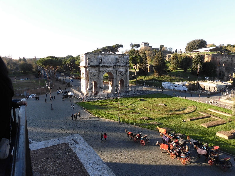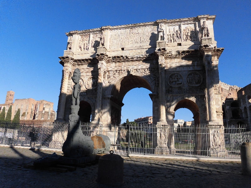 フォロ・ロマーノの南の端に在るのが”コンスタンチヌスの凱旋門”です。コンスタンチヌス帝が315年にテベレ川でマクセンティウス帝と戦って勝利した記念に立てられたそうです。フォロ・ロマーノの古代ローマの政治、宗教、商業の中心地だった公共広場に立てられています。