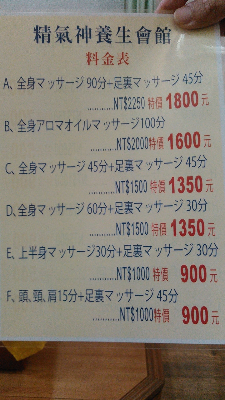 ホテルの近くで、口コミ評判が良かったので行ってみました。メニュー表を見て、決め、時間たっぷり、おしゃべりもせず、しっかりマッサージしてもらいました。気に入ったので、翌日も別メニューでやってもらいました。もみ返しもなく上手でした。