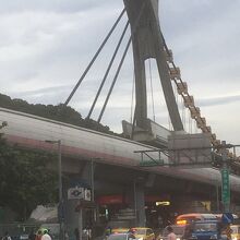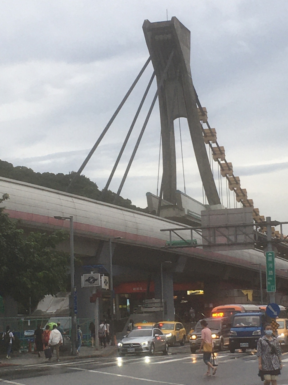 士林駅よりも剣潭駅のほうが、士林夜市の最寄り駅になっていました。出口は3か所くらいありましたが、1番出口を出て人の流れにのっていくと、順調に士林夜市の入り口に出てきました。駅の前は、工事中になっていました。