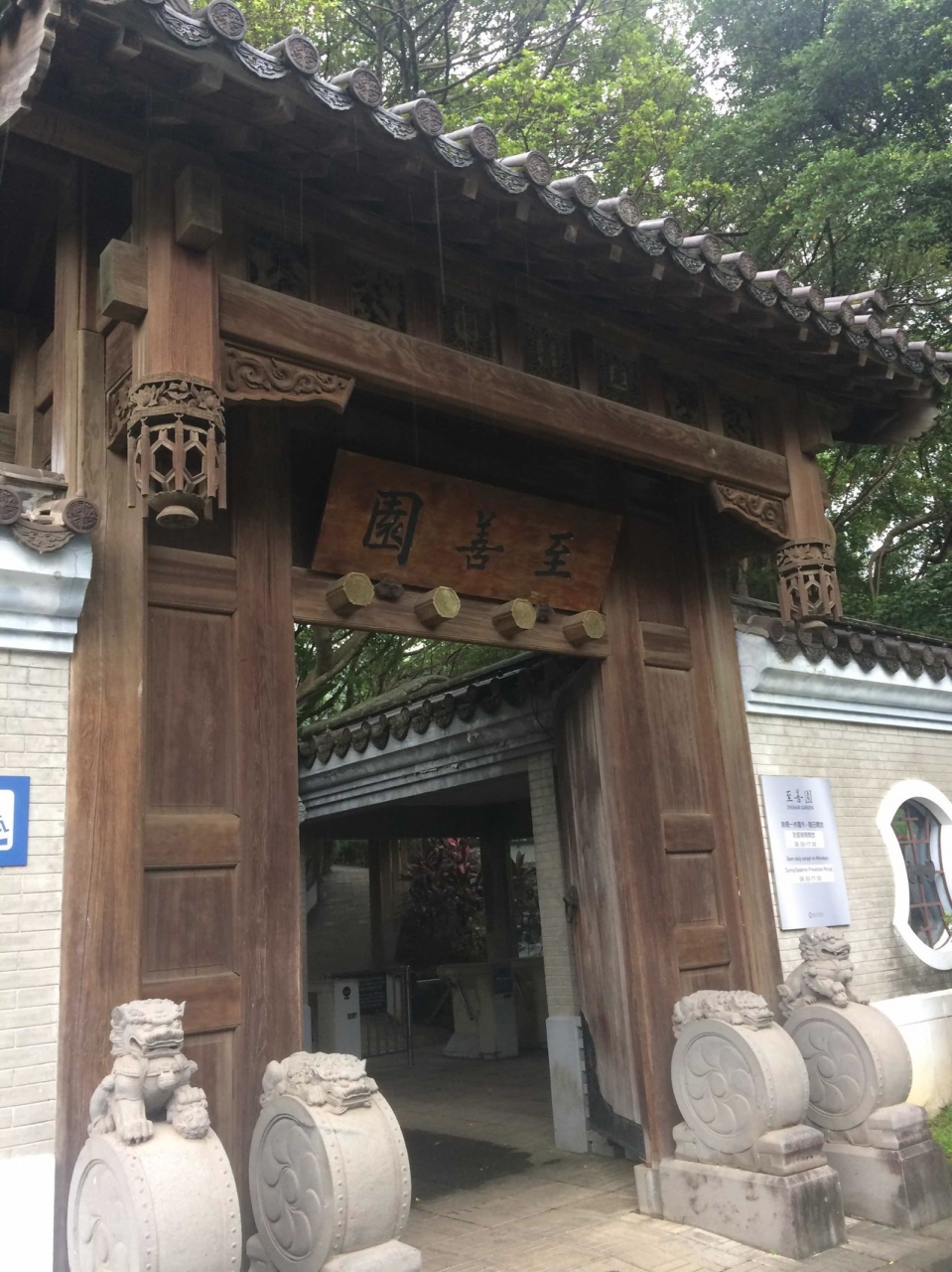 木陰や東屋があるものの、日中の暑い日はずっと屋外になるので、結構大変かと思います。公共トイレがありました。それと、自動販売機があり、かなりの人達が冷たい飲み物を買っていました。入り口の部分が木製で珍しかった