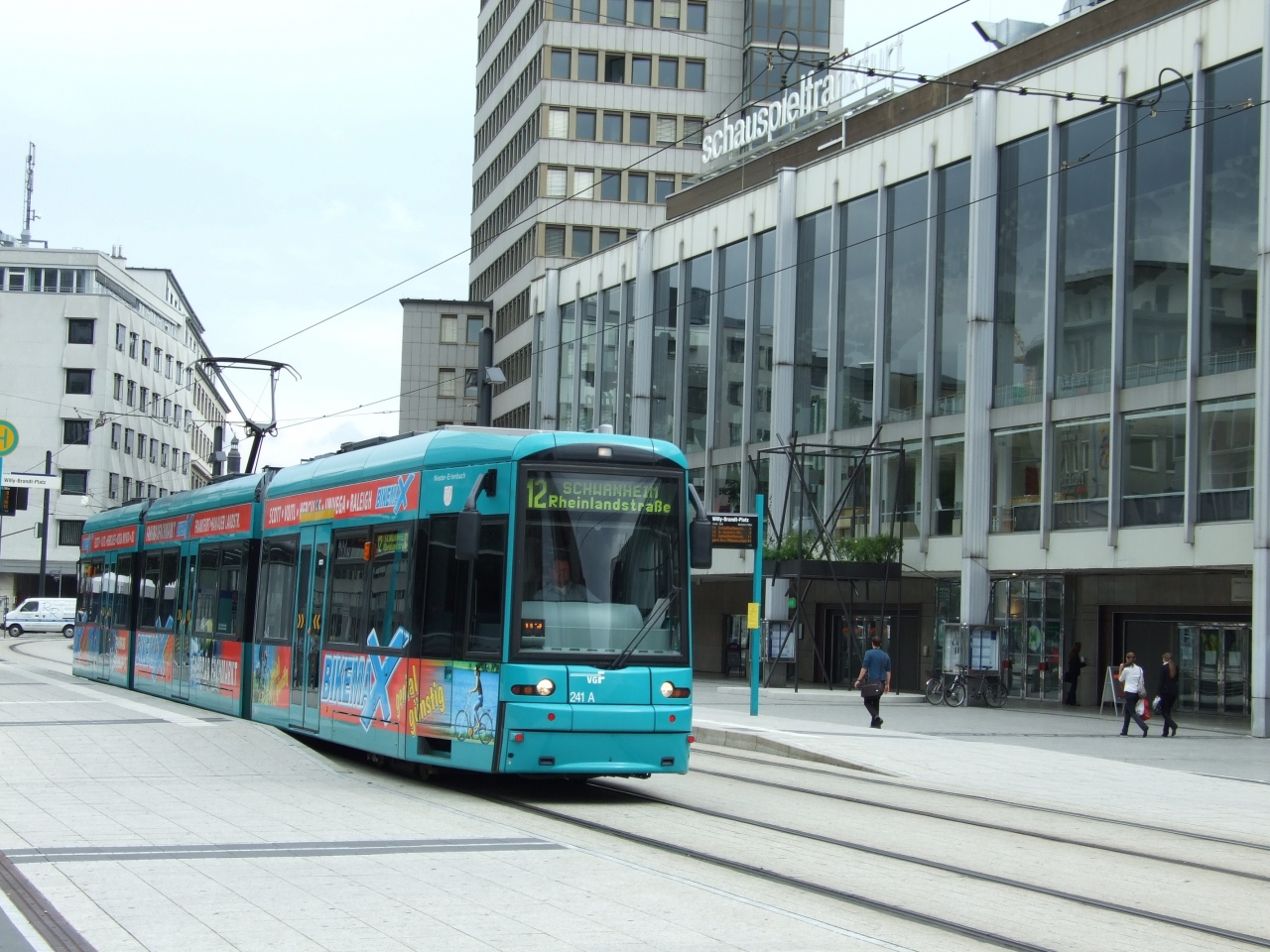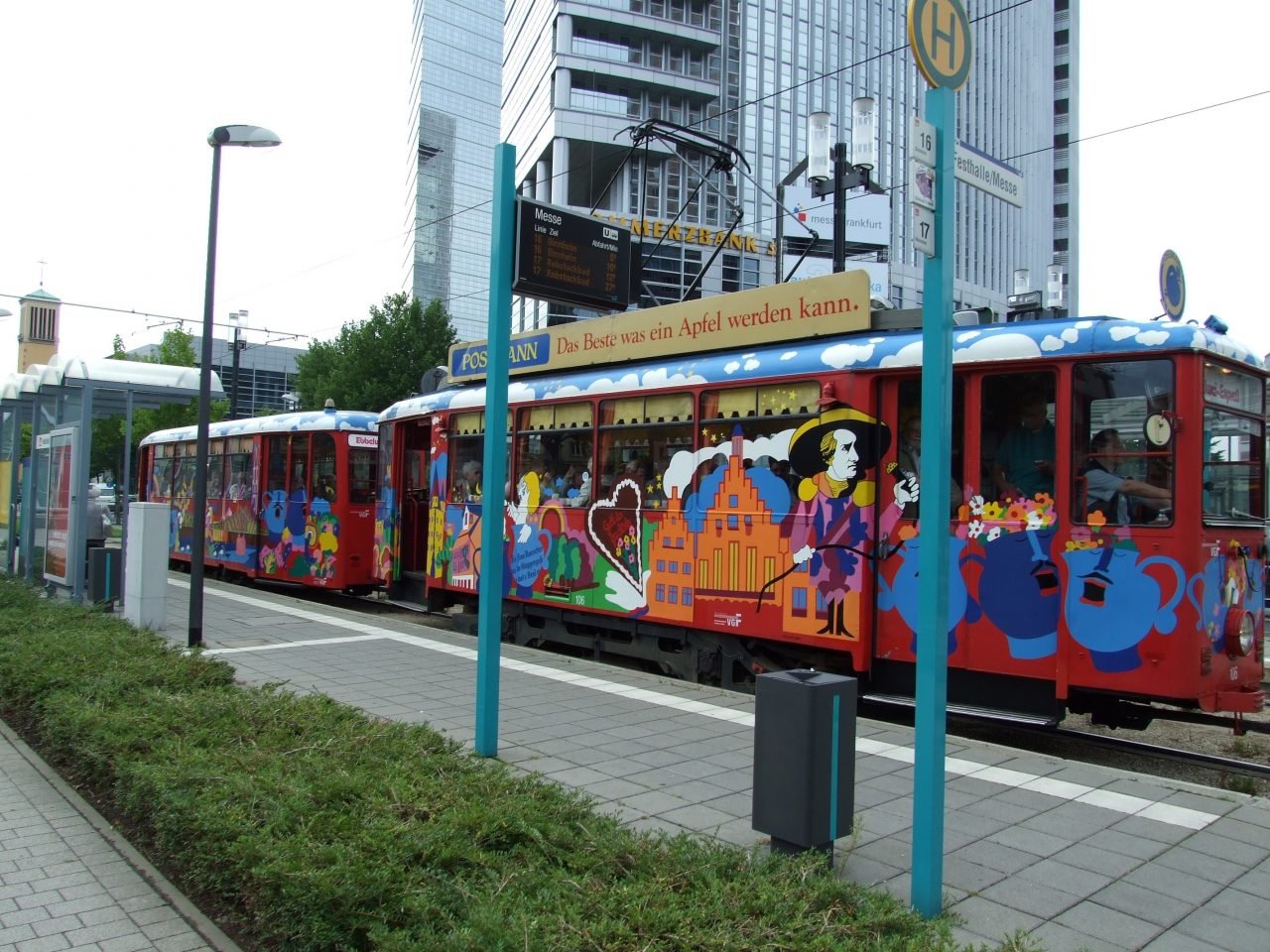 フランクフルト・アム・マインは、ドイツ第一に国際線航空路が集まる要衝です。ドイツ国鉄中央駅から、見本市会場や欧州中央銀行、市役所広場などには路面電車網が連絡しています。市内中心部では地下を走っています。