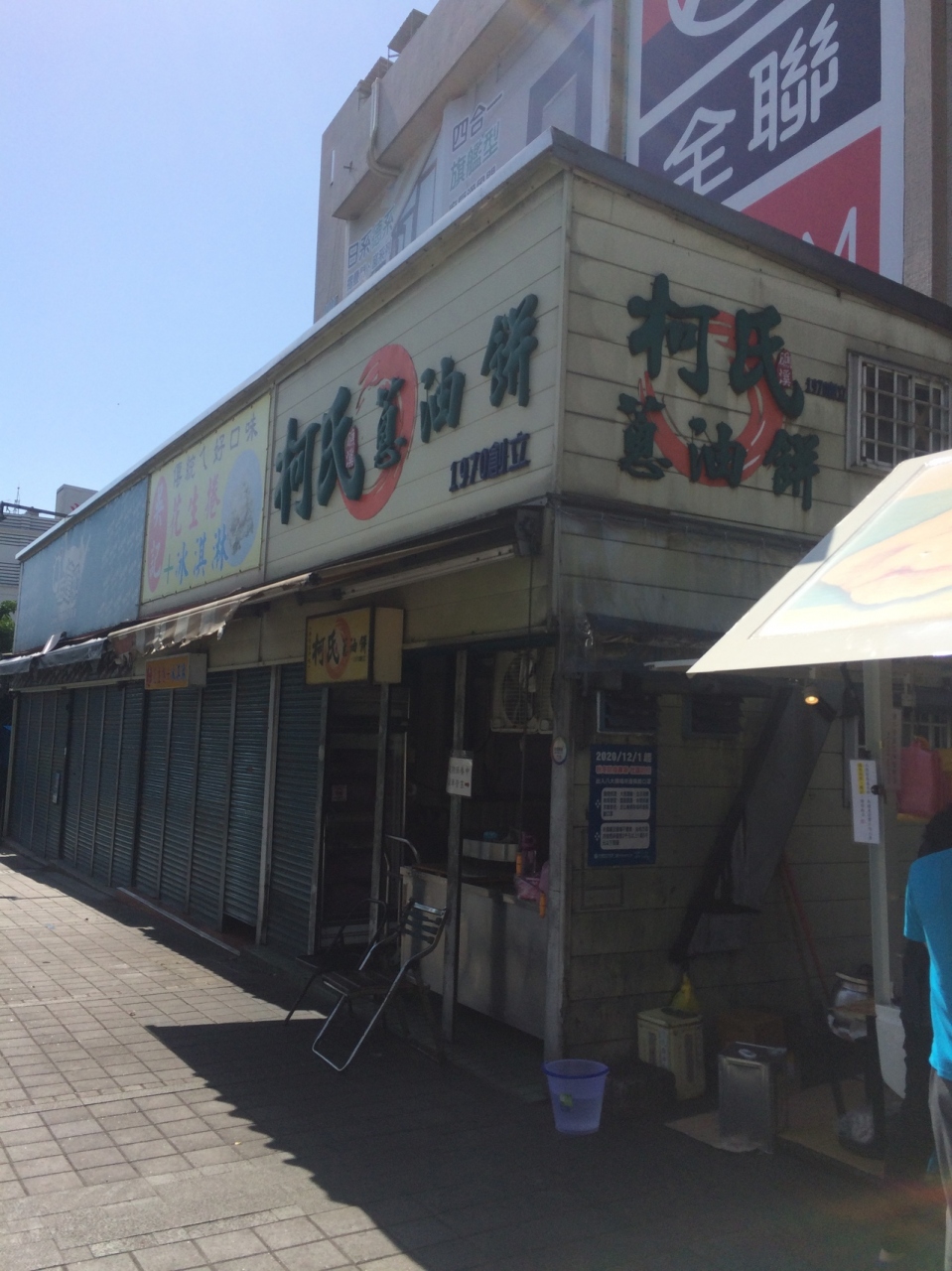 卵付きの葱油餅のめちゃくちゃおいしいお店です。郵便局が向かいにあり、この柯氏葱油餅の通りにあるピーナッツの粉をかけたバニラアイスの春巻き?のようなデザートもおいしかったです。ドリンク店も隣の隣にありました。