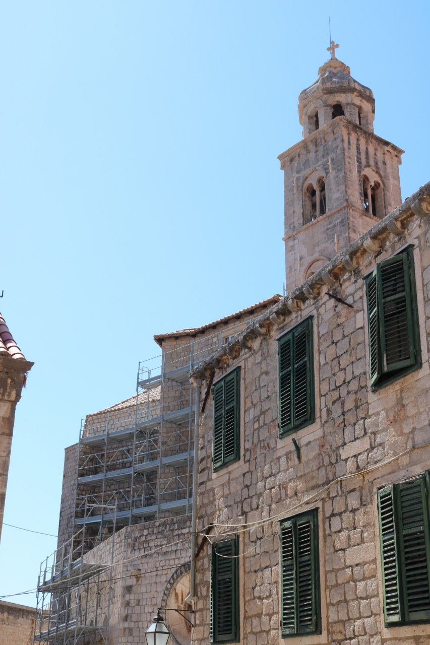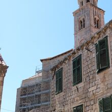 元々は、城壁の東側の外側にあったそうですが、防衛上の問題で、この修道院の外側に、城壁ができたそうです。ロマネスク・ゴシック・ルネッサンスの様式を取り入れた美しい建物です。中庭の教会の塔がとても素敵でした。