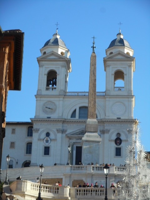 スペイン広場の階段を上がると”トリニタディモンティ教会”に行けます。広場から望める塔が二つある、白い大きな教会でフランスの教会だそうです。無料で見学でき、内部はすっきりした内装でモザイク画もなく、宗教画が多いイタリアの教会とは一線があります。