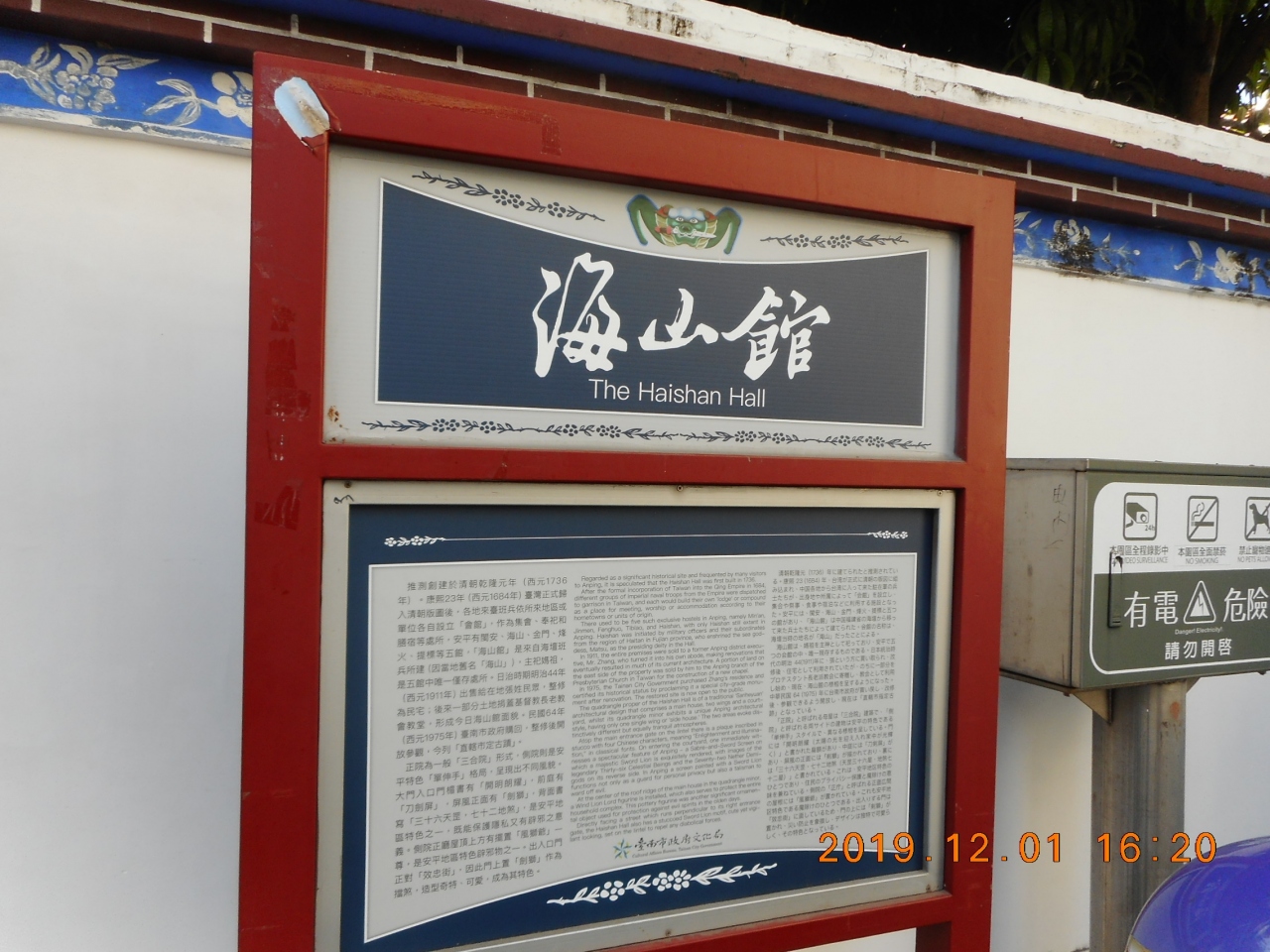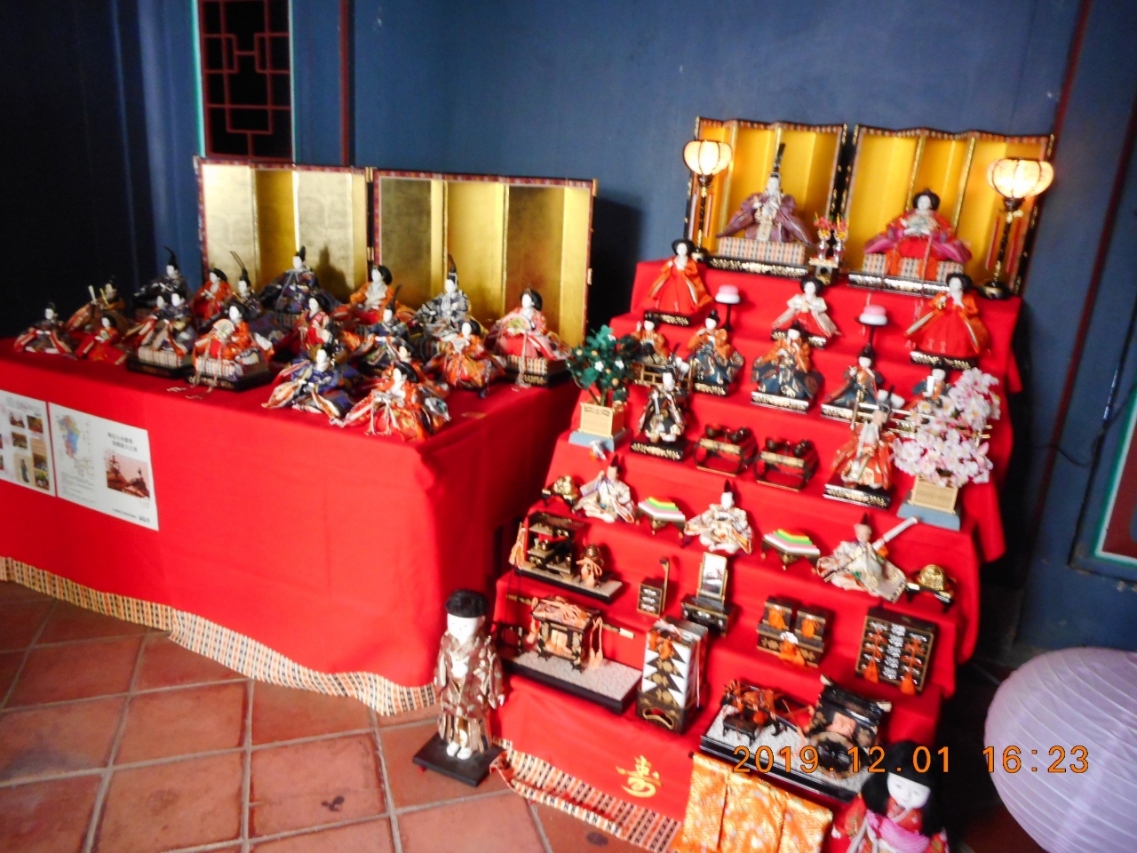 施設の説明板によると、1736年に建てられたと言われており、同じような「会館」は安平に5つあり、「海山館」はその一つで、唯一残っている建物です。日本統治時代には住宅と教会として利用され、最終的には台南市が買い取って現在開放してるそうです。九州のPRイベントを行っていたみたいで、豪華なひな人形が飾られていました。