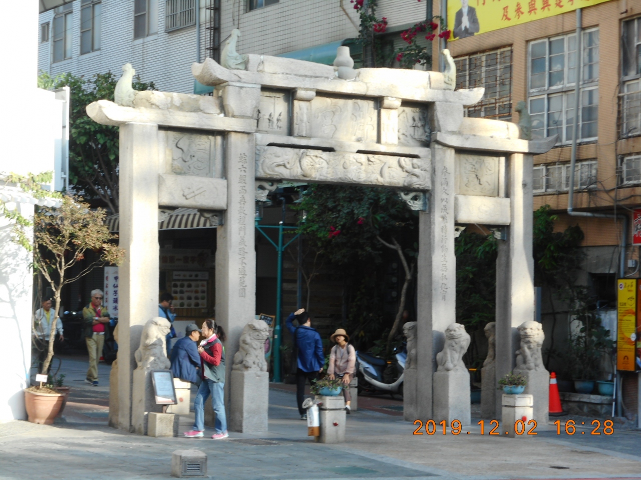 台南の市街観光で立ち寄りました。台南孔子廟の東側にある石造りの門で、4本の柱には足元に獅子の像が2頭ずつ裏表に配置されていました。一つの門に8頭もの獅子が配置されているのは初めて見ました。南門路から府中街への入り口にあり、南門路を挟んで孔子廟の門の一つと向かい合う配置でした。