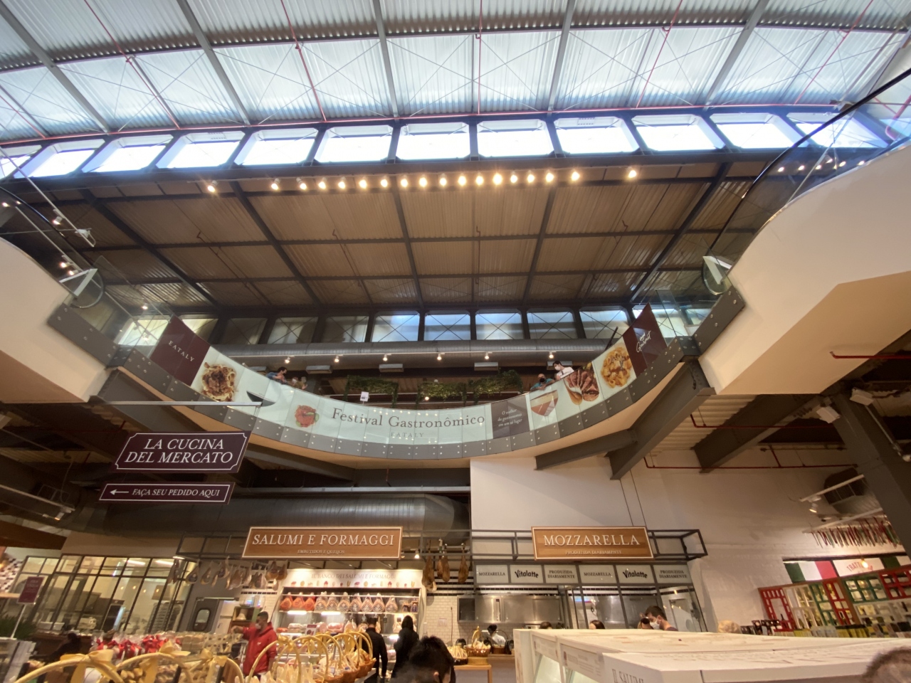 吹き抜けの三階建てですが、二階にはイタリア食材のフードコートがあったり、三階にはビール&レストランなんぞもございます。