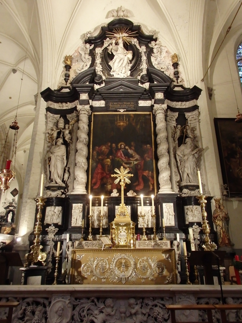 聖ヤコブ教会は、ルーベンスハウスの北300メートルほどの所にありルーベンスハウスからなら徒歩5分くらいでしょうか。15世紀~17世紀に建てられたゴシック様式の教会で、内部はバロック様式の金・銀製の装飾で溢れ数多くの芸術品が並びます。