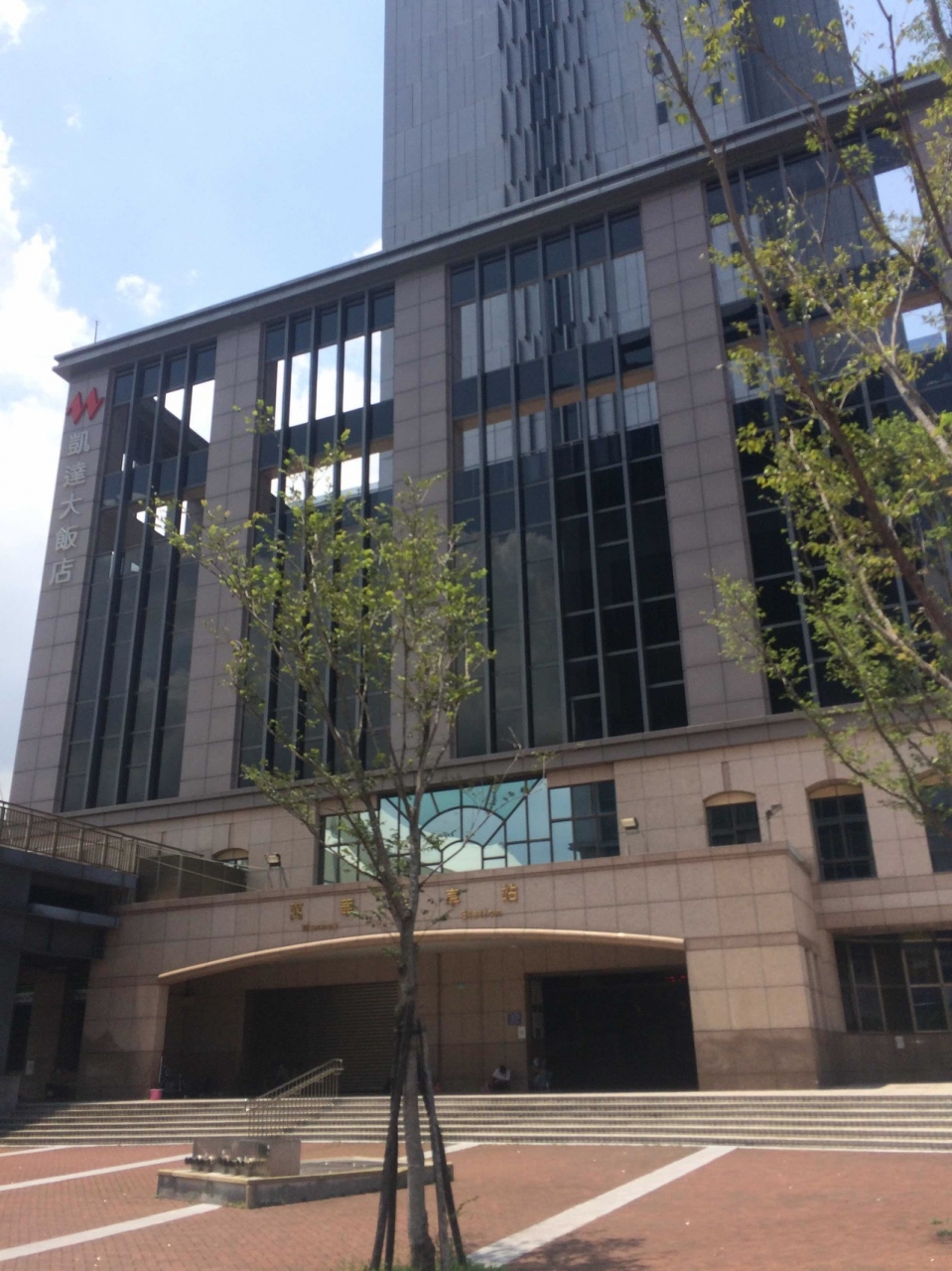 改札口は2つあり、出口のみの改札口もありました。ヨウヨーカードを使用すると、少し割引になりました。台北駅までは1駅で15元のところ12元とかになったと思います。駅の上にはビル、シーザーパークホテルがありました。