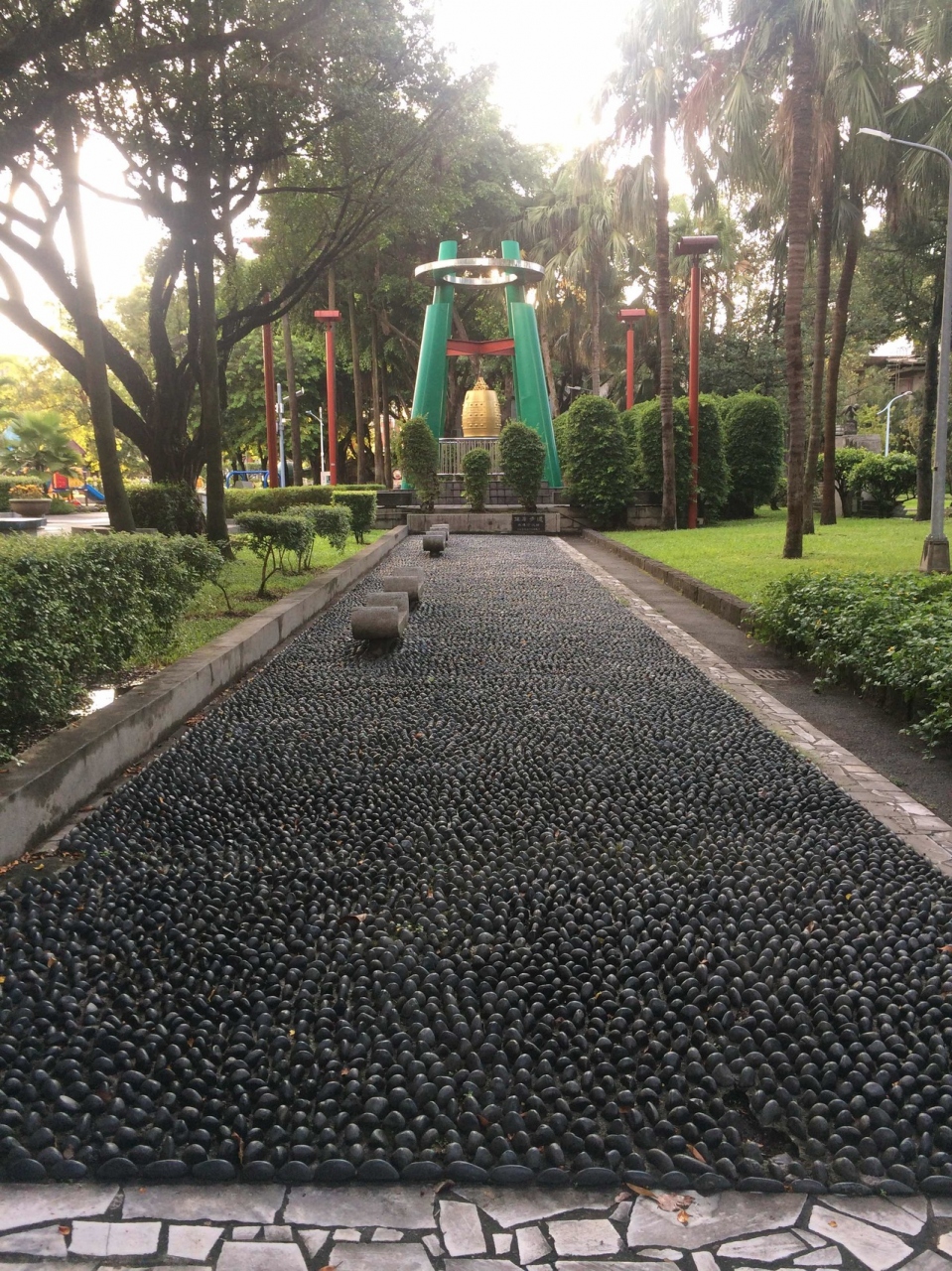 健康歩道のそばには、足のイラストと、中国語と英語で足つぼの部位と体の臓器の部位が書いてあります。自分は肝臓と頭の部分が特に痛かったので、そこに気を付けようと思いました。いずれにしても、全部の足裏が痛かった。