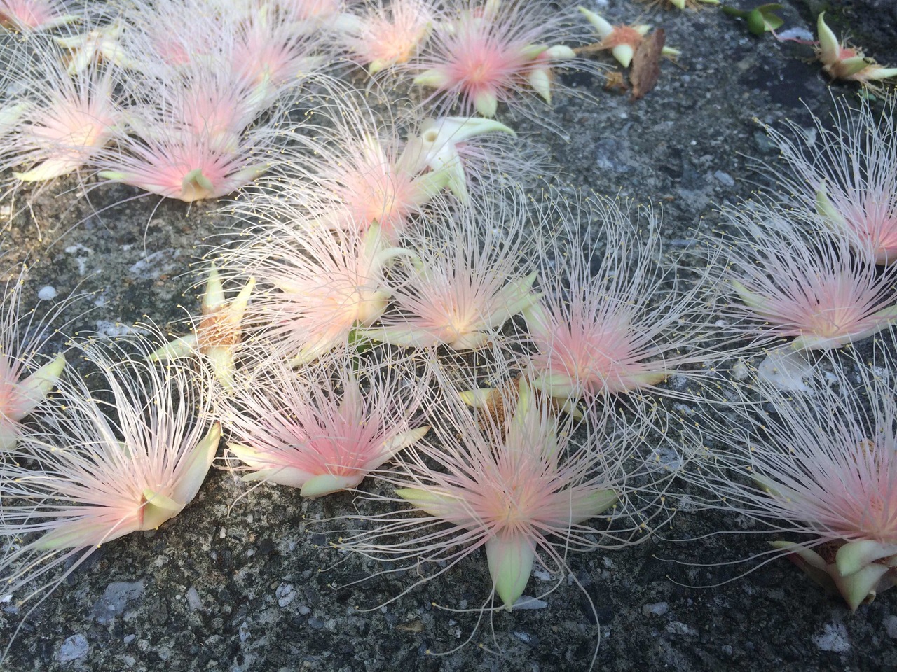 公園路の北部は、台北駅の付近で、二二八公園の東側を通り、さらに南の方向へのびています。日本統治時代に建てられた台湾大学医院の旧建物も圧巻です。公園路の北側は、お店が並ぶが、南側はのびのびしていて、とげとげの珍しい花が道路に落ちてました。