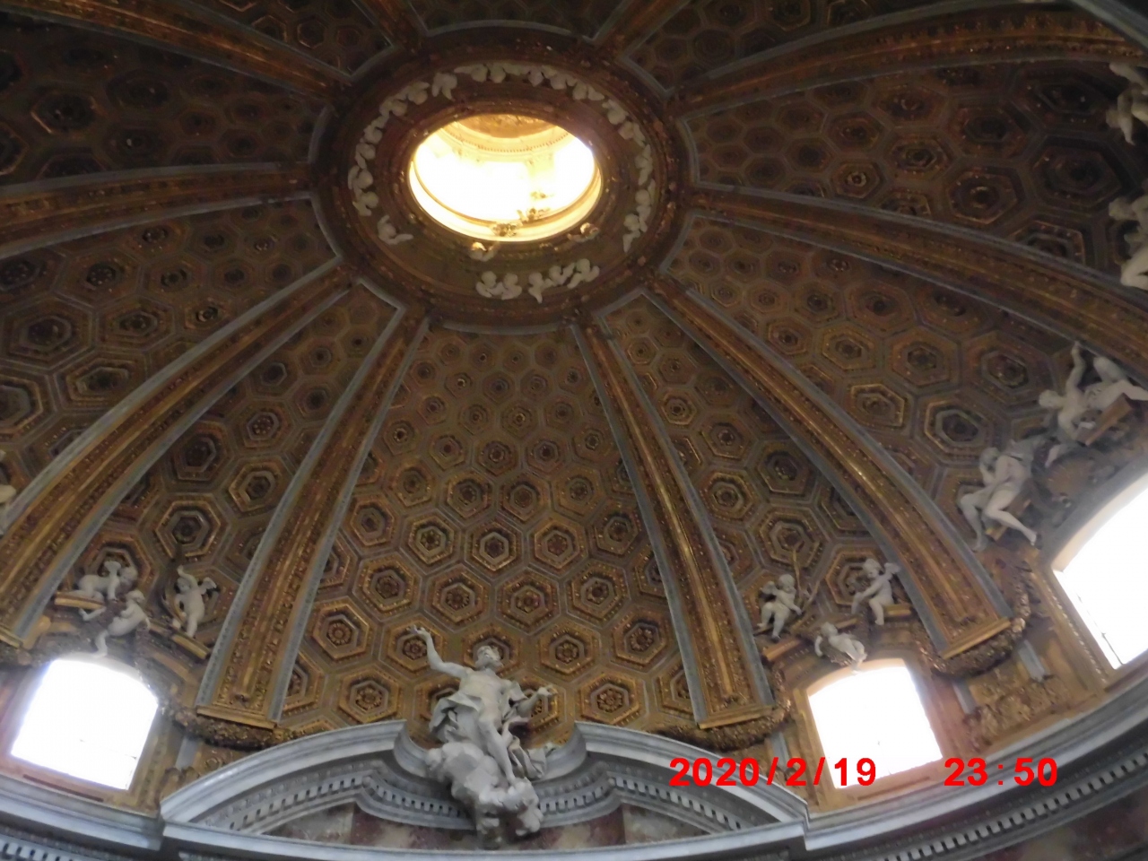 イタリアのローマ観光で立ち寄りました。サン カルロ アッレ クアットロ フォンターネ教会に立ち寄った後、クイリナーレ通りを道なりに南西に数分進むと、クイリナーレ庭園の向かい側にありました。円筒形の建物に見えたのですが、入って見るに楕円になっている感じでした。ベルニーニが狭い土地に工夫して教会を建てたのが理由みたいです。赤い大理石で仕切られた有名なアプシスはやhり見ごたえがありました。