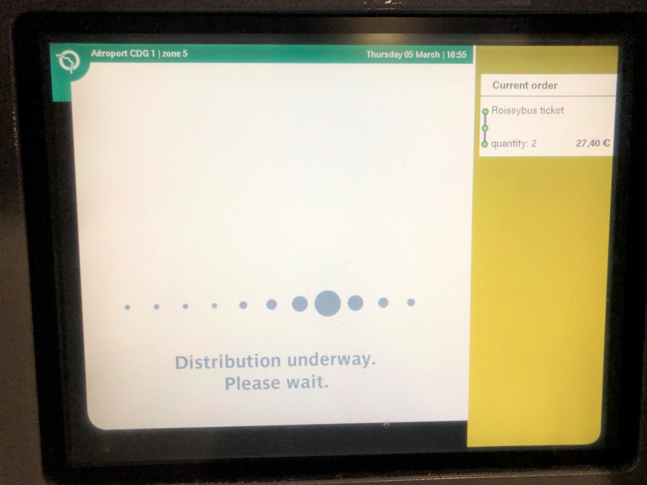 パリ市内(オペラ座)までのバスのチケットを購入しました。