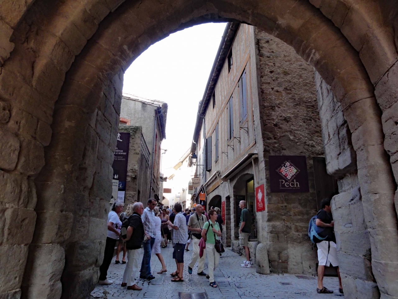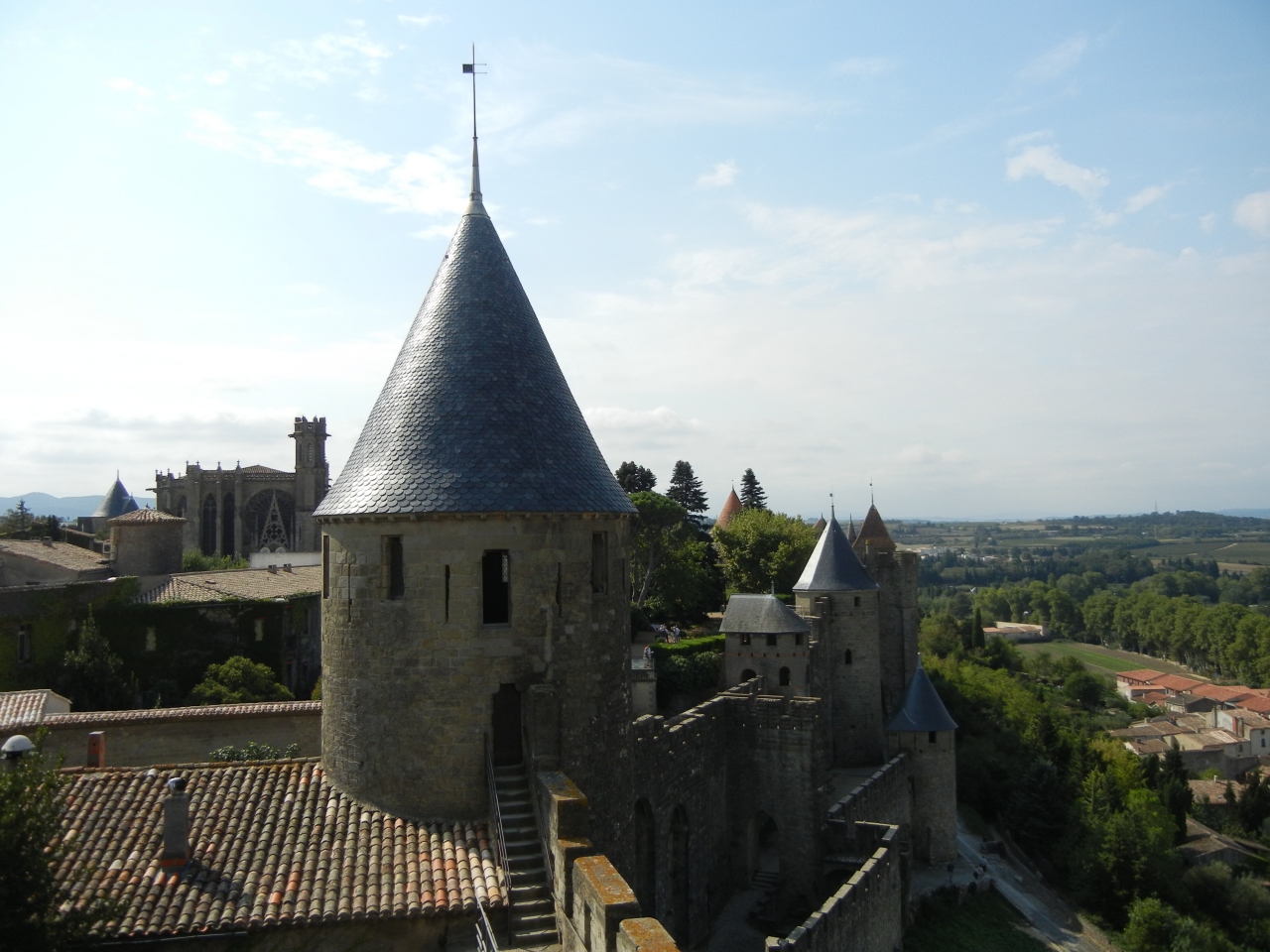モンペリエに仕事で滞在していた際に、日帰り観光で訪れました。電車がカルカソンヌに近づくと、車窓から中世風の城塞が見えてきます。二重城壁に囲まれた「歴史的城塞都市」までは、カルカソンヌ駅から2kmほどの距離があり、我々はバスで移動しました。城壁前の広場に到着し、城門を通って城塞都市の中を見学しました。高い石壁で囲まれた城塞内に町があり、その内部に更に石壁で囲まれた城(コンタル城)があります。城壁内を歩いていると、敵の進入に絶えず備えながら、狭い城塞内で生活をせざるを得なかった中世時代の人々の不便な生活が想像されます。