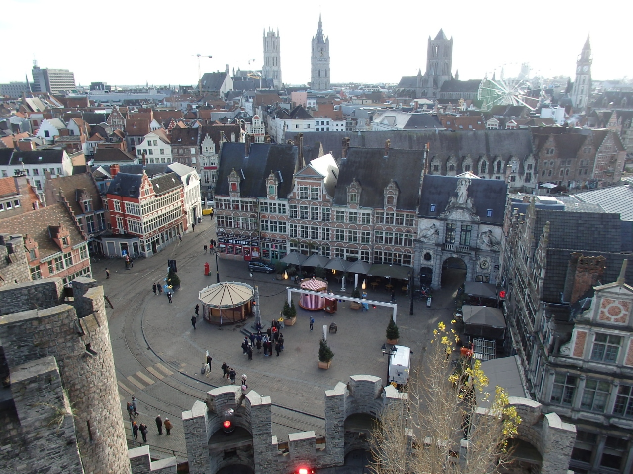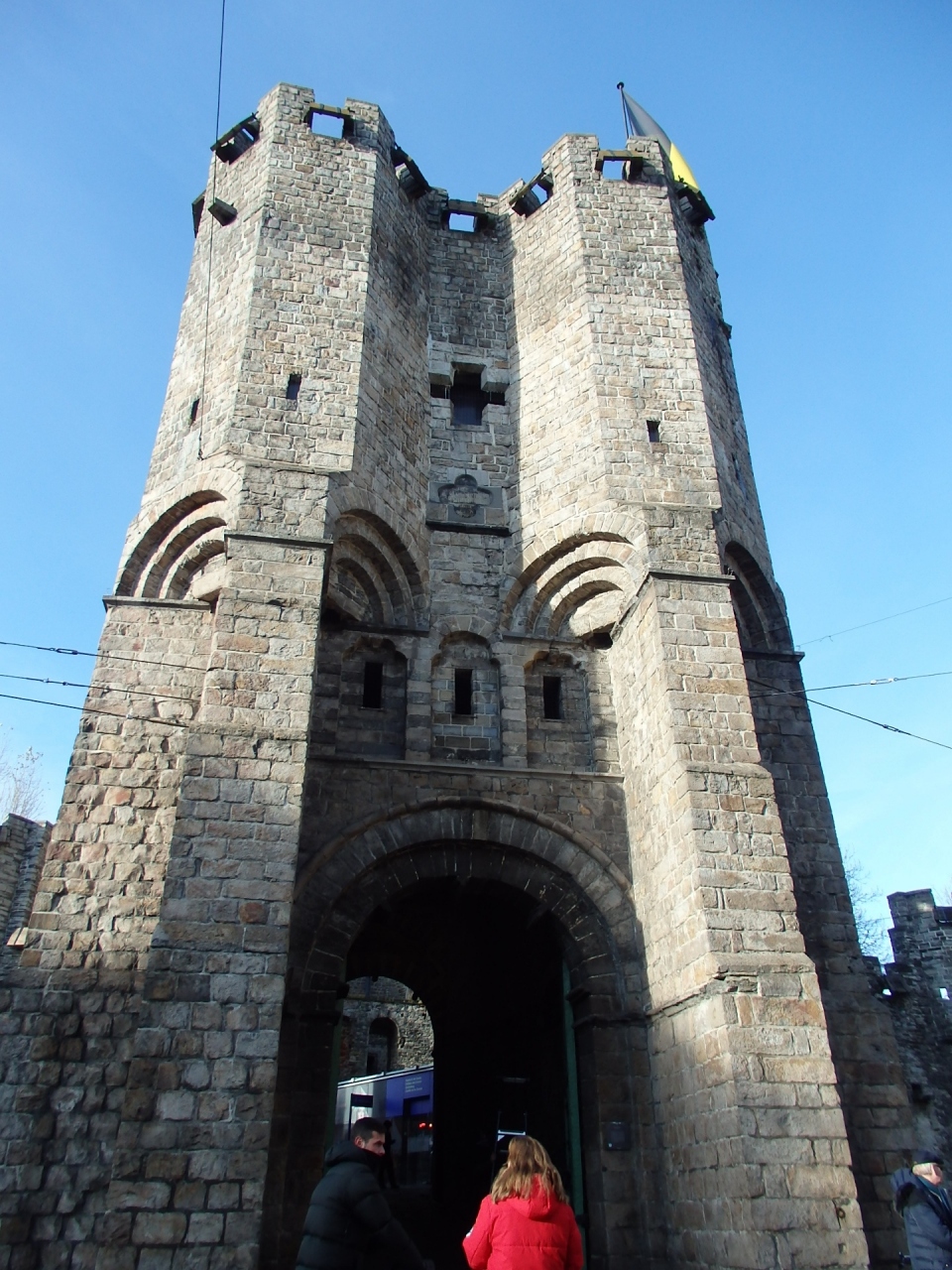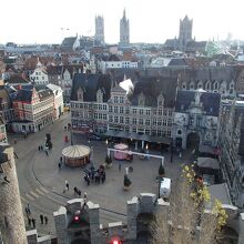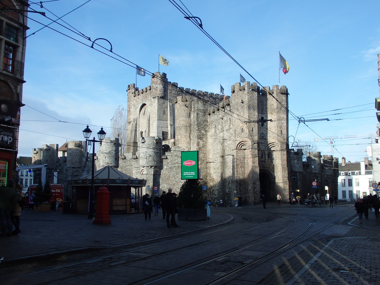 コーレンレイやグラスレイの北側に位置するフランドル伯の居城は、ゲント最古の広場聖ヴェール広場に面しています。このお城はフランドル伯アルヌルフ1世がバイキングの侵入に対抗するために10世紀に建てた要塞に始まり、フランドル伯フィリップ・ダルダスによって1180年に城塞に造り直されました。十字軍がシリアに造った要塞を模して造られた堅固なお城で、周囲を濠で囲まれています。14世紀半ばまでフランドル伯爵の住居として使用されていましたが、14世紀には軍事機能を失い、拷問室や牢獄はアウデブルグ学校、伯爵領の造幣局、裁判所などの公的機関として利用されるようになりました。その後18世紀には綿製糸工場と工員の宿舎としても利用されました。実戦で損傷を受けることがほとんどなかったため造られた当時の姿をほぼ保っており、改修工事を経て現在は一般公開されています。