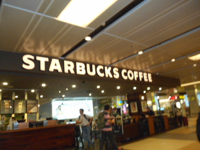 帰国前に”スターバックス”で一休みでドリンクしました。世界各国の空港にもあるスターバックスは搭乗ゲートに行きやすいエリアに在りますが、シンガポールのチャンギ空港は広いので、早めに搭乗口に向かいました。