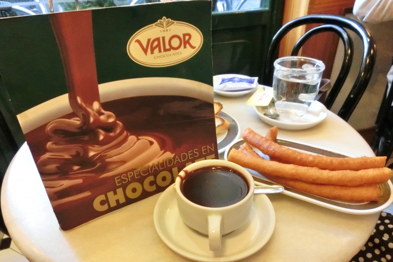 1881年創業のチョコレート専門店が運営するチョコレートカフェです。朝食に立ち寄りました。チュロス4本付きのチョコラテにダージリンティーを注文、チュロスはオリーブ油でさくっと揚がっていて中はもちもち、濃いチョコレートをたっぷりつけて、おいしくいただきました。子供が大喜びしそうな朝食でした。